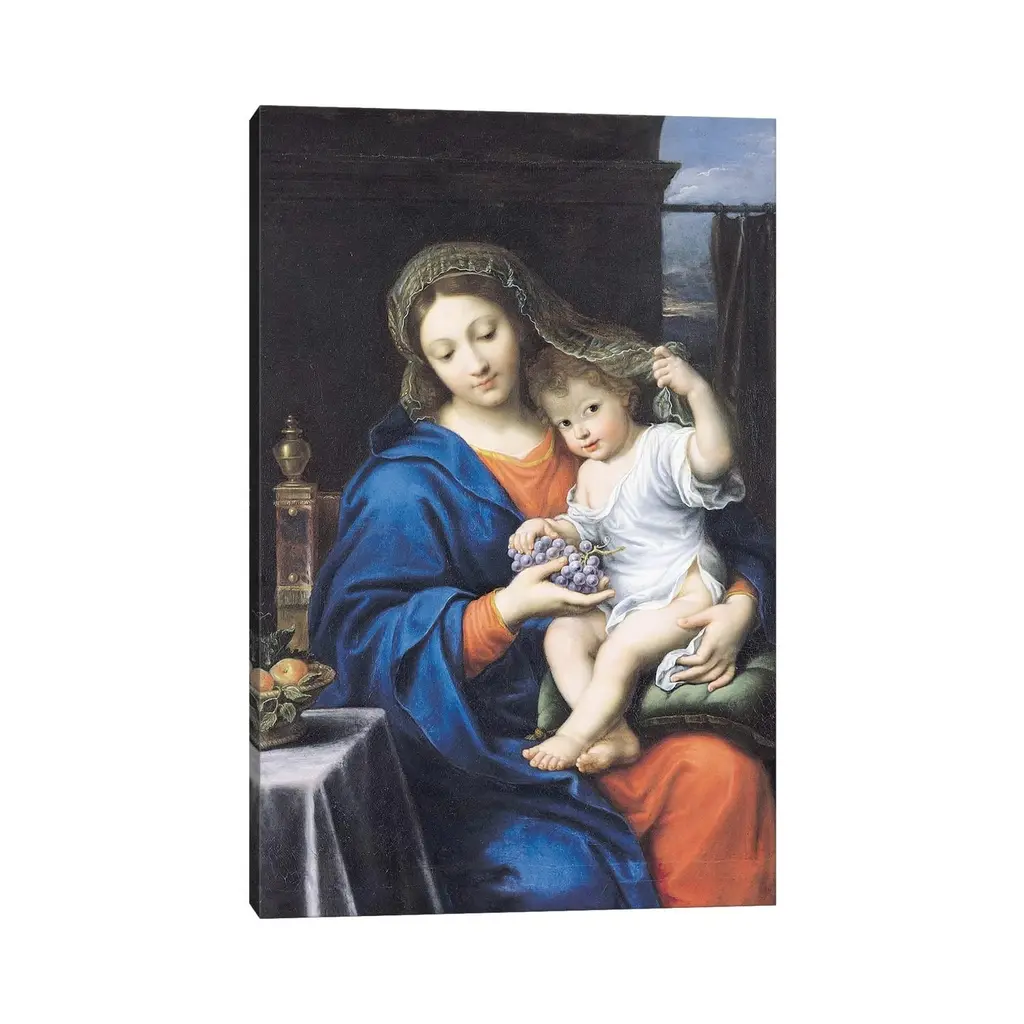 Icanvas "The Virgin Of The Grapes, 1640-50 " By Pierre Mignard Canvas Print - 12x8x0.75