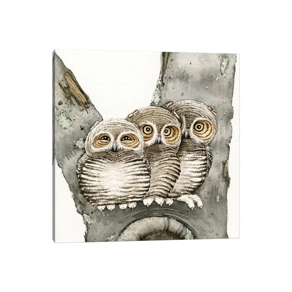Icanvas "Three Owls" By Tracy Lizotte Canvas Print - 26x26x1.5