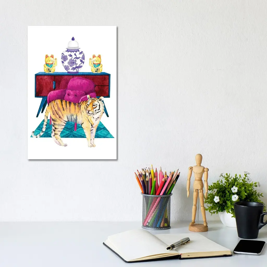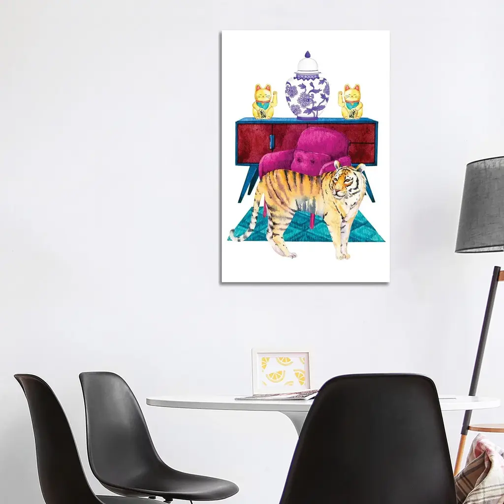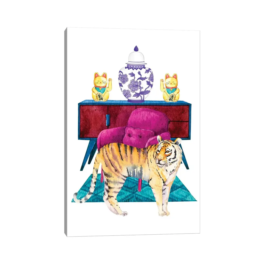 Icanvas "Tiger In Chinoiserie Decor Living Room" By Jania Sharipzhanova Canvas Print - 26x18x1.5