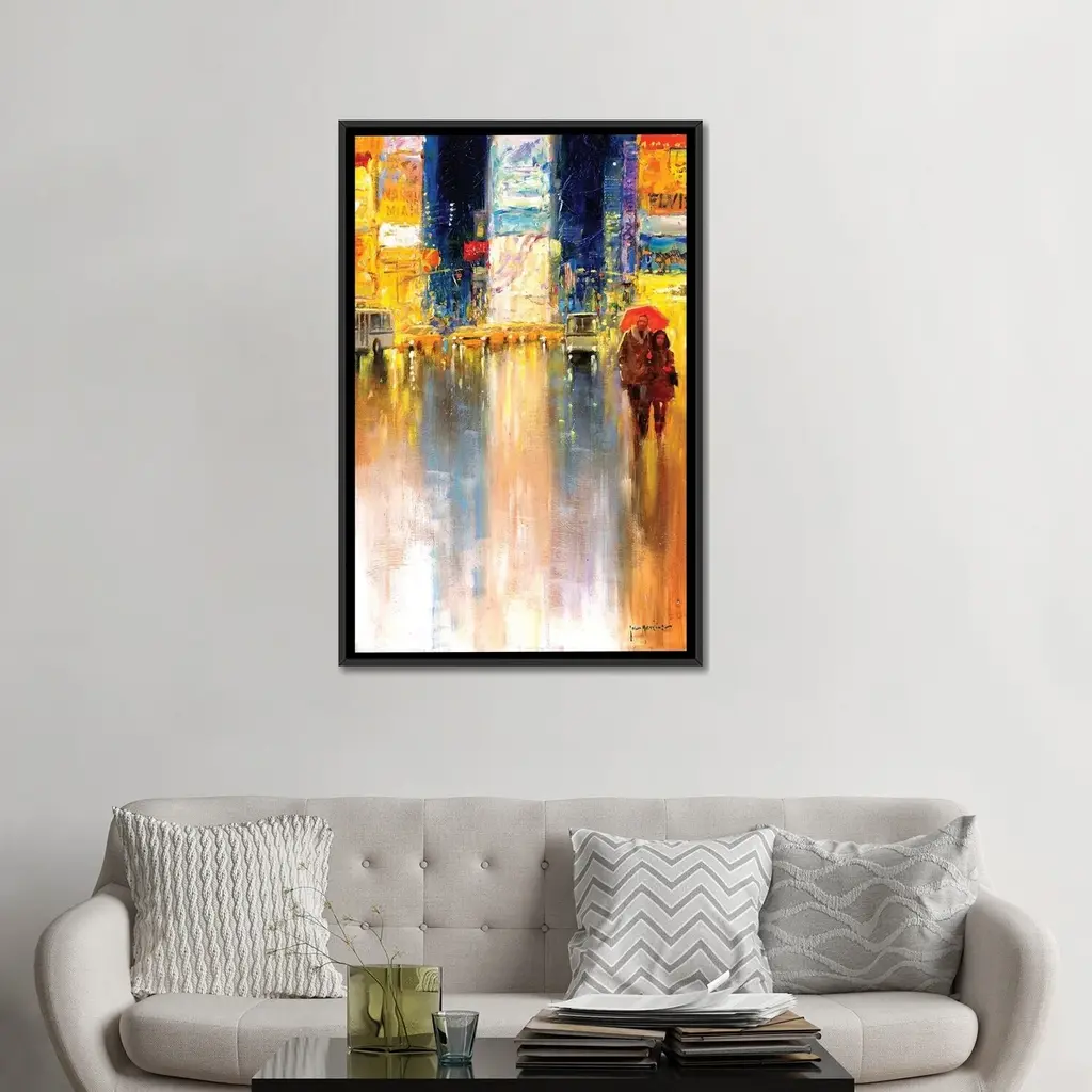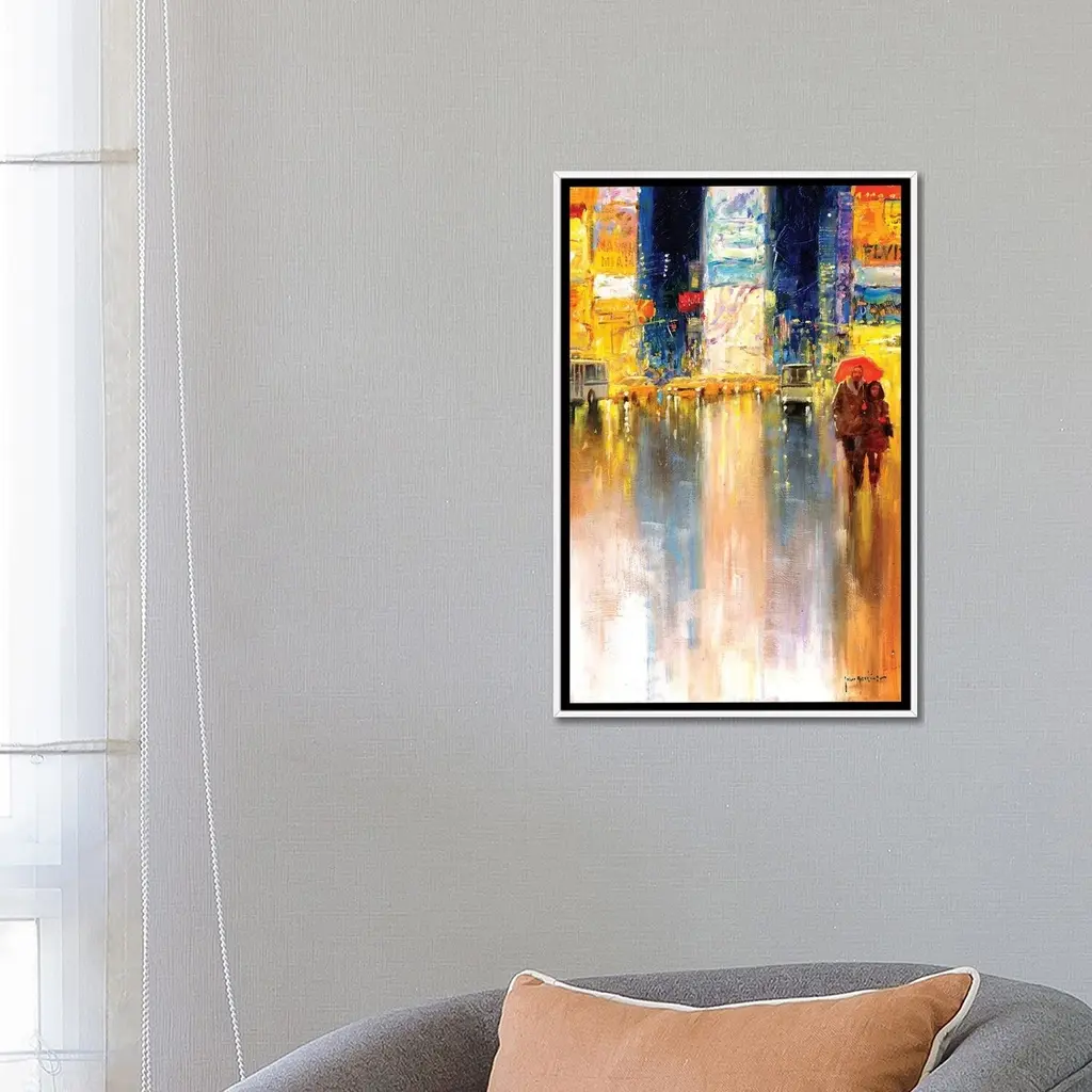 Icanvas "Times Square Evening" By John Haskins Framed Canvas Print - Black - 26x18