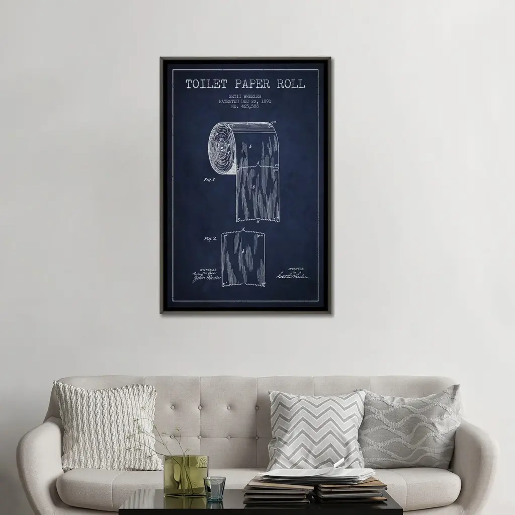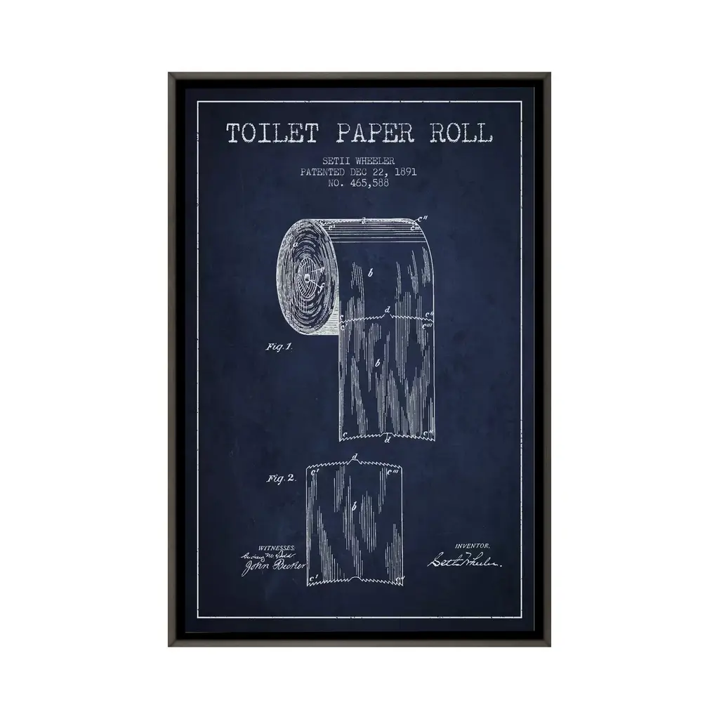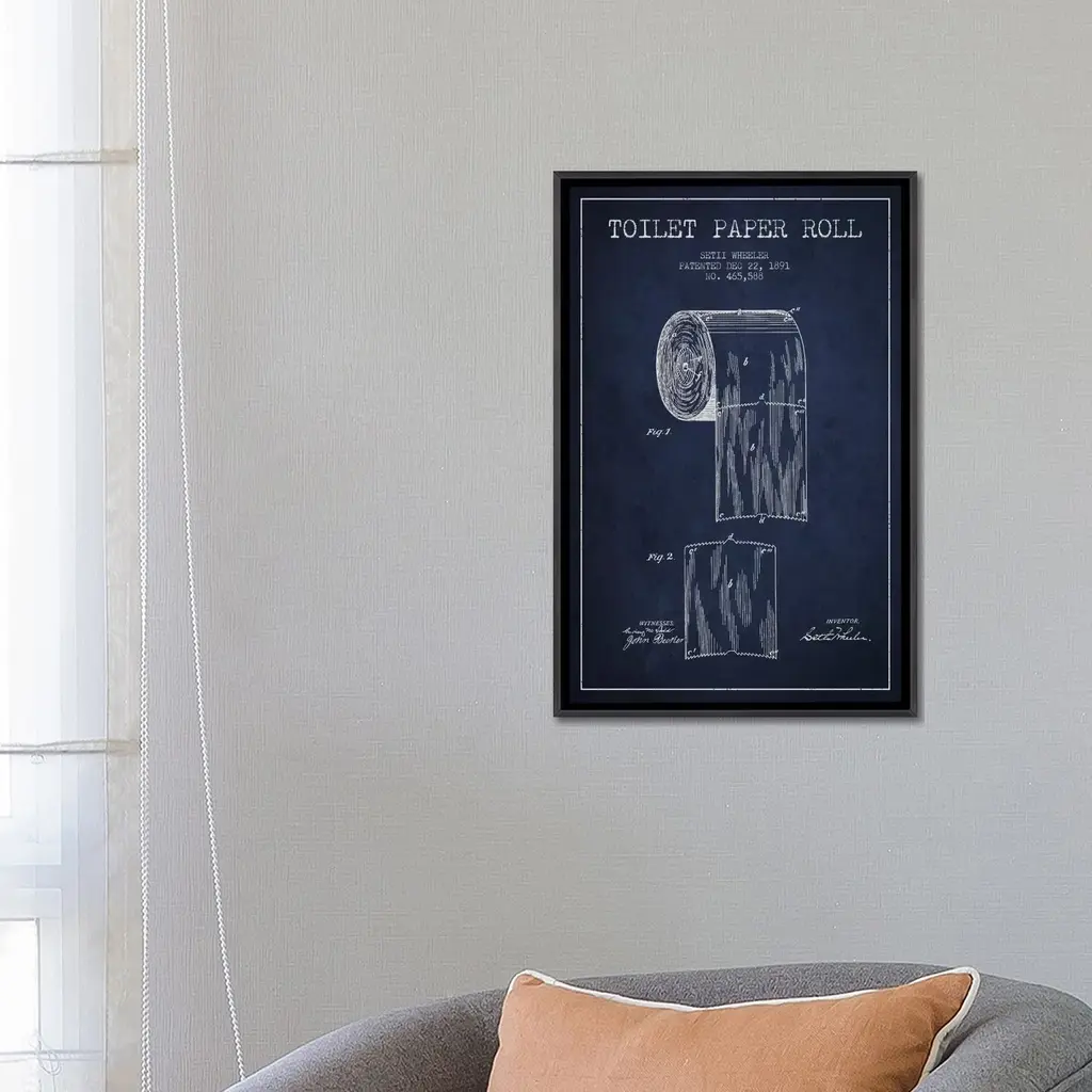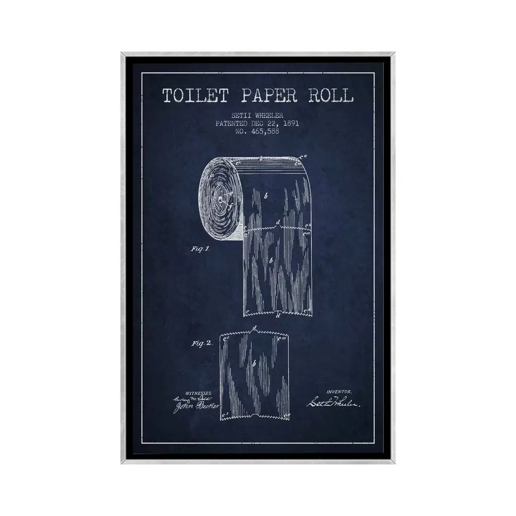 Icanvas "Toilet Paper Navy Blue Patent Blueprint" By Aged Pixel Framed - Ebony - 26x18