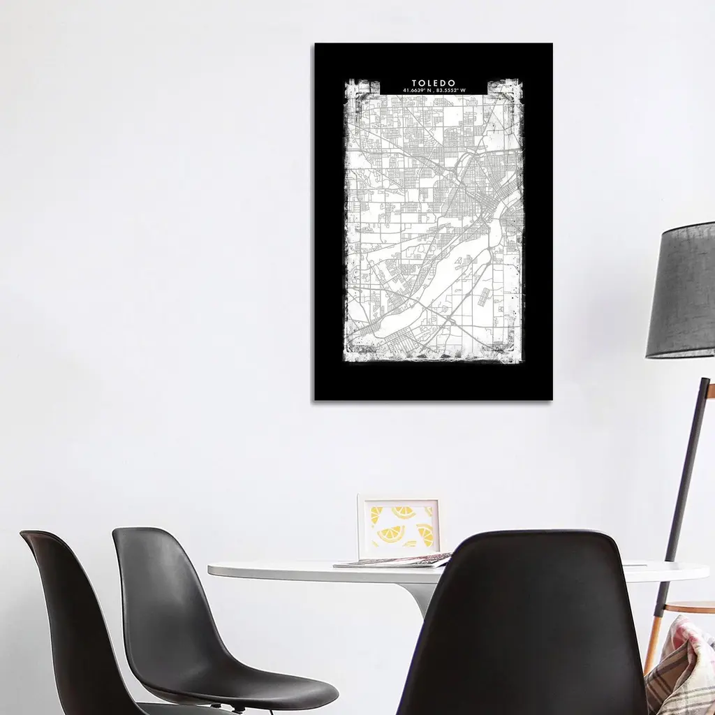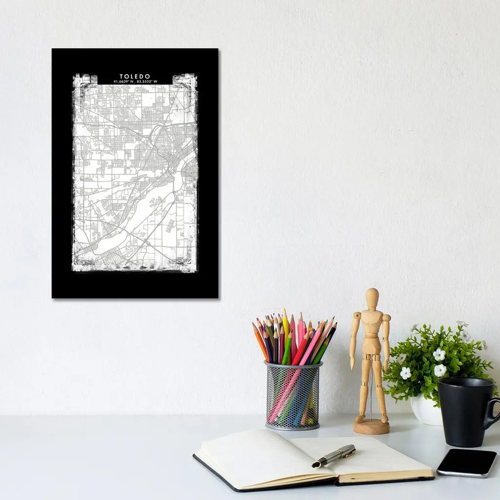 Icanvas "Toledo City Map Black White Grey Style" By Walldecoraddict Canvas Print - 12x8x0.75