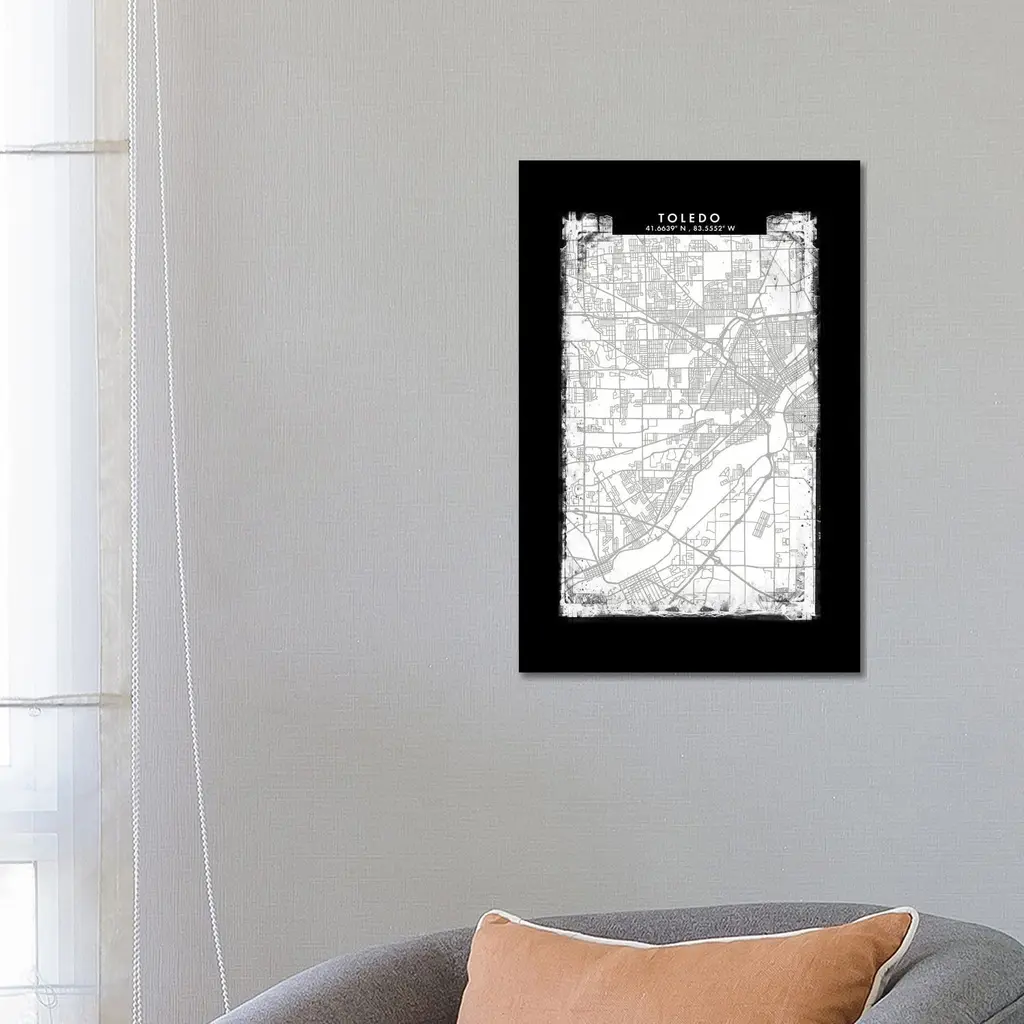 Icanvas "Toledo City Map Black White Grey Style" By Walldecoraddict Canvas Print - 48x32x1.5