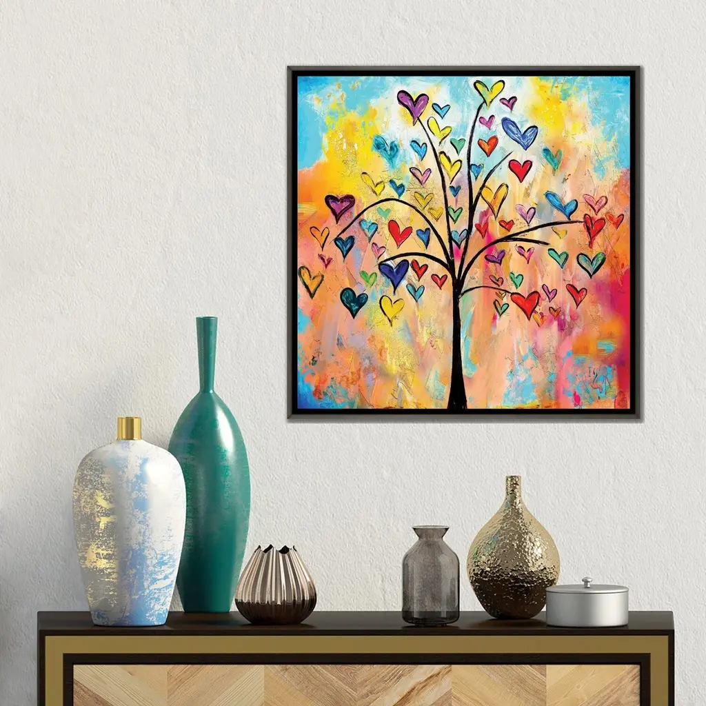 Icanvas "Tree Of Hearts" By Ivan Guaderrama Framed - 18x18 - Ebony