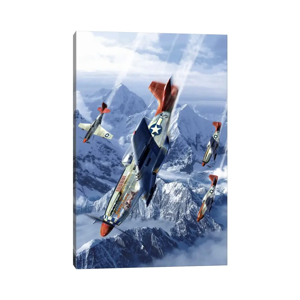 Icanvas "Tuskegee Airmen Flying Near The Alps In Their P-51 Mustangs" By Kurt Miller Canvas Print - 26x18x1.5