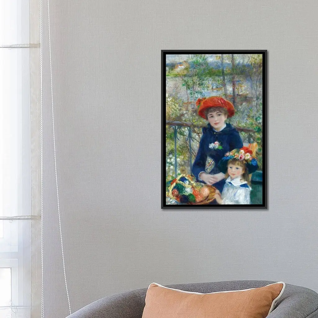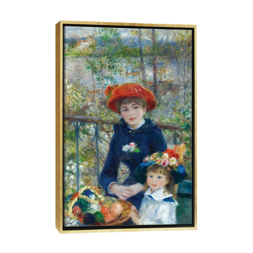Icanvas "Two Sisters (On The Terrace) 1881" By Pierre-Auguste Renoir Framed Canvas Print - White - 40x26