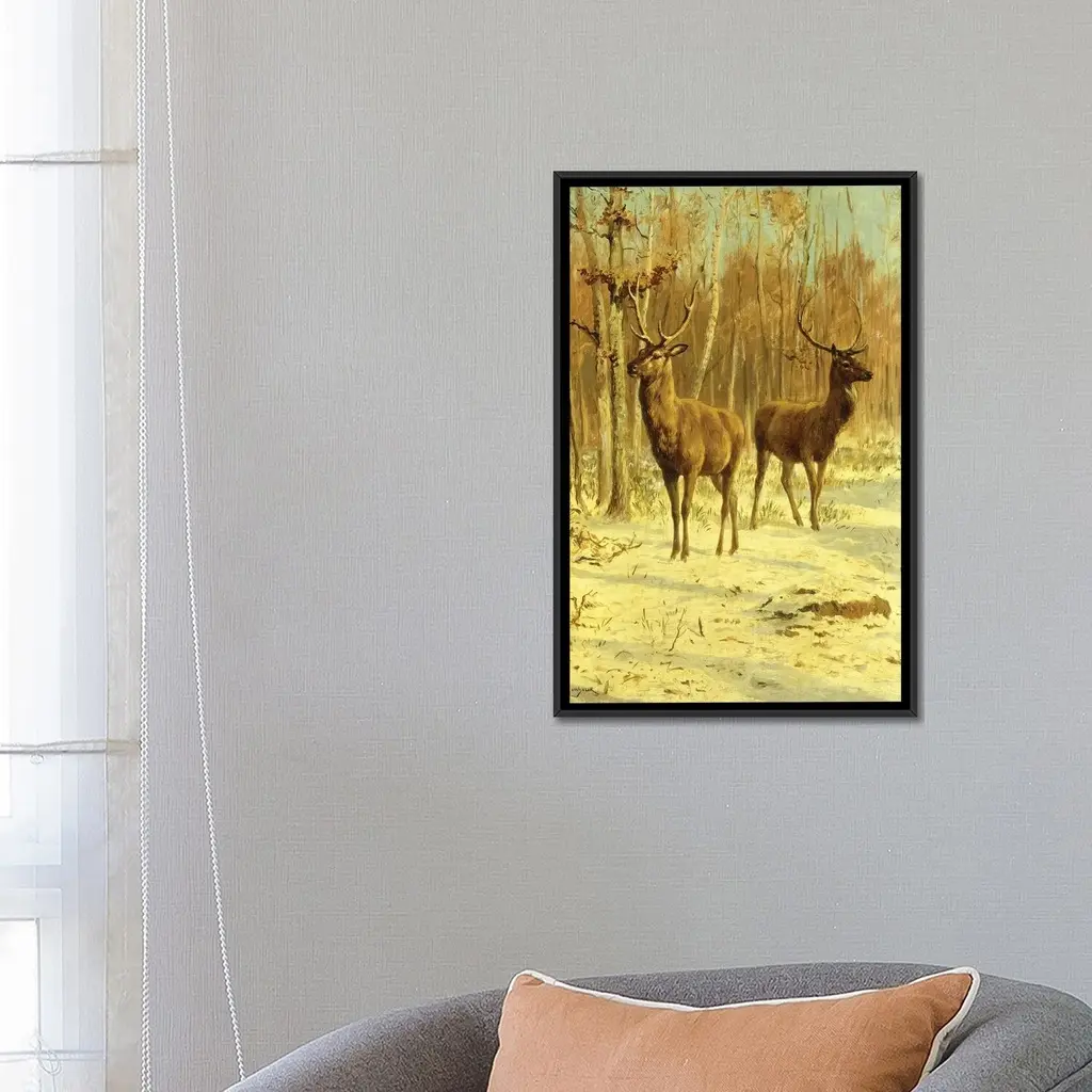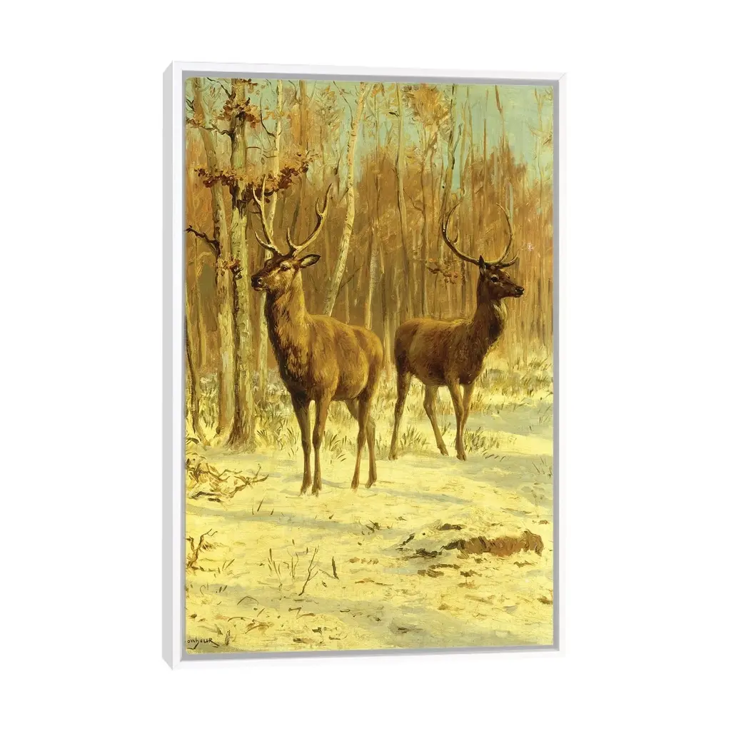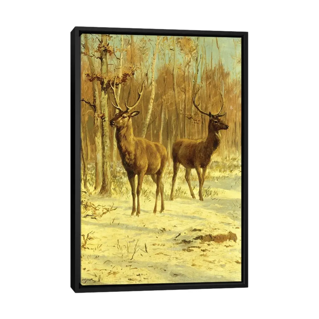 Icanvas "Two Stags In A Clearing In Winter" By Rosa Bonheur Framed - Gold - 26x18