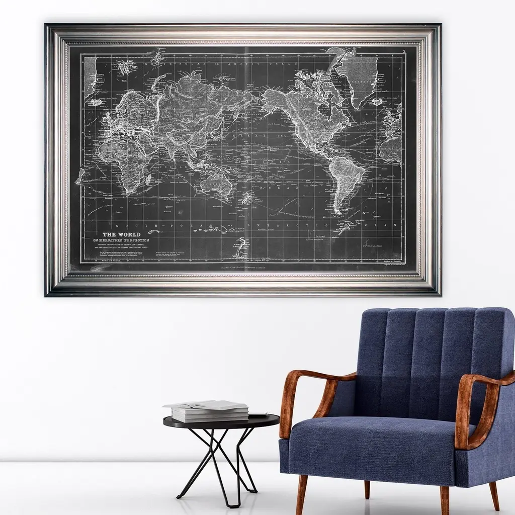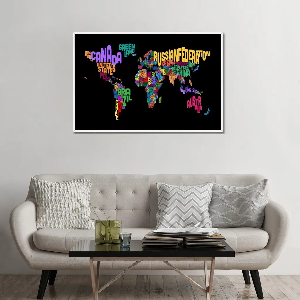 Icanvas "Typographic Text World Map Ii (Black)" By Michael Tompsett Framed Canvas Print - Black - 32x48