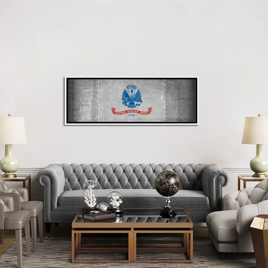 Icanvas "U.s. Army Flag (Riveted Metal Background) I" By Icanvas Framed Canvas Print - 20x60 - White