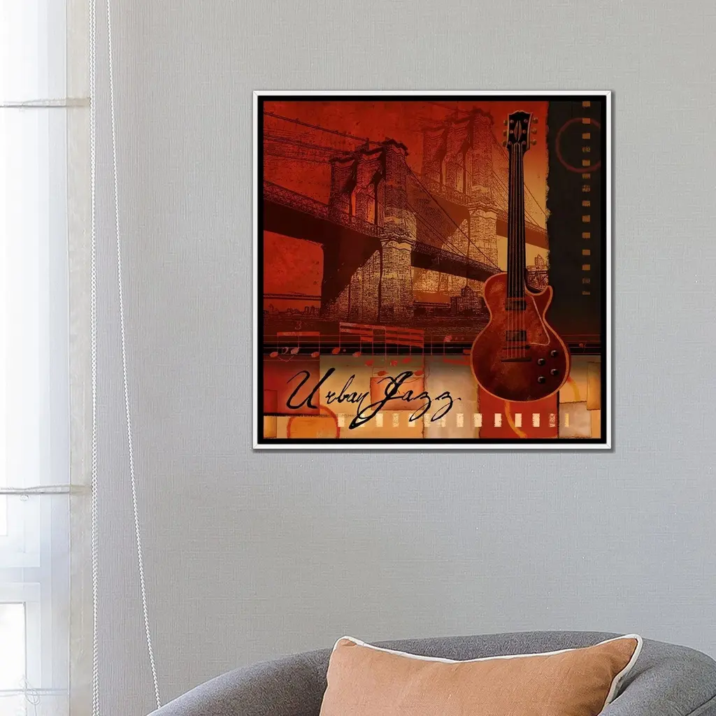 Icanvas "Urban Jazz" By Conrad Knutsen Framed Canvas Print - Black - 12x12