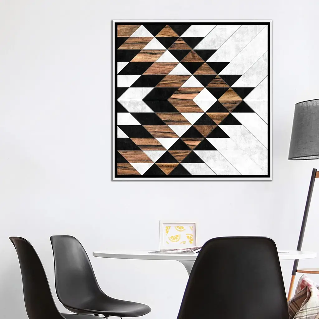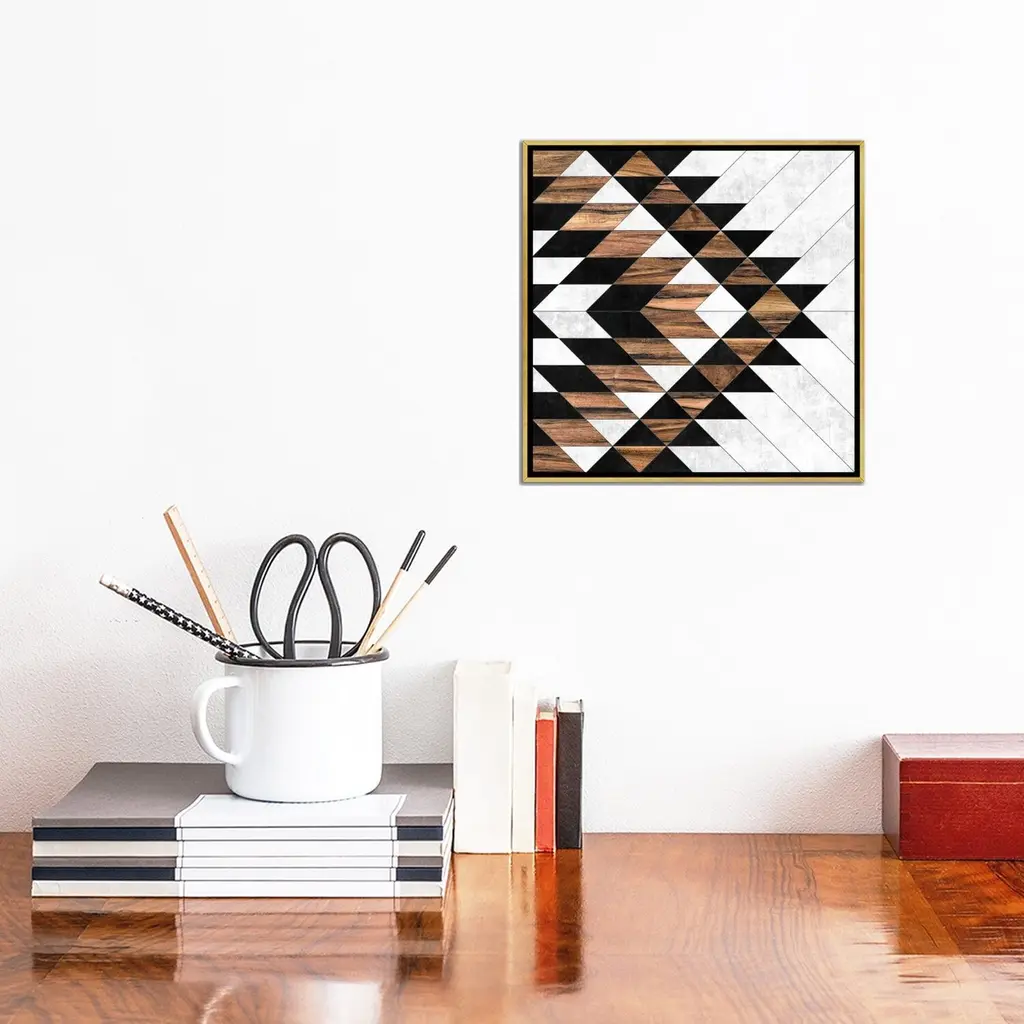 Icanvas "Urban Tribal Pattern No.9 - Aztec - Concrete And Wood" By Zoltan Ratko Framed Canvas Print - Black - 18x18