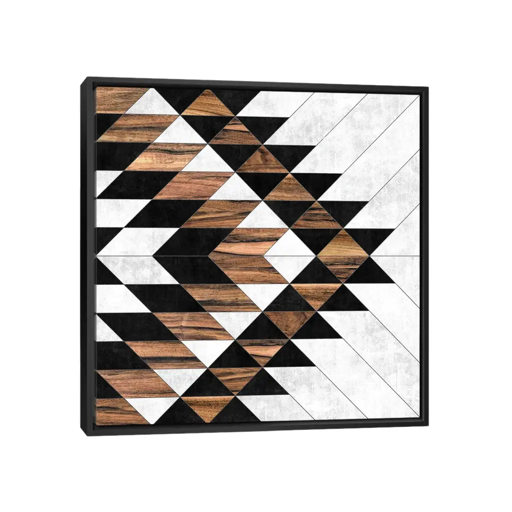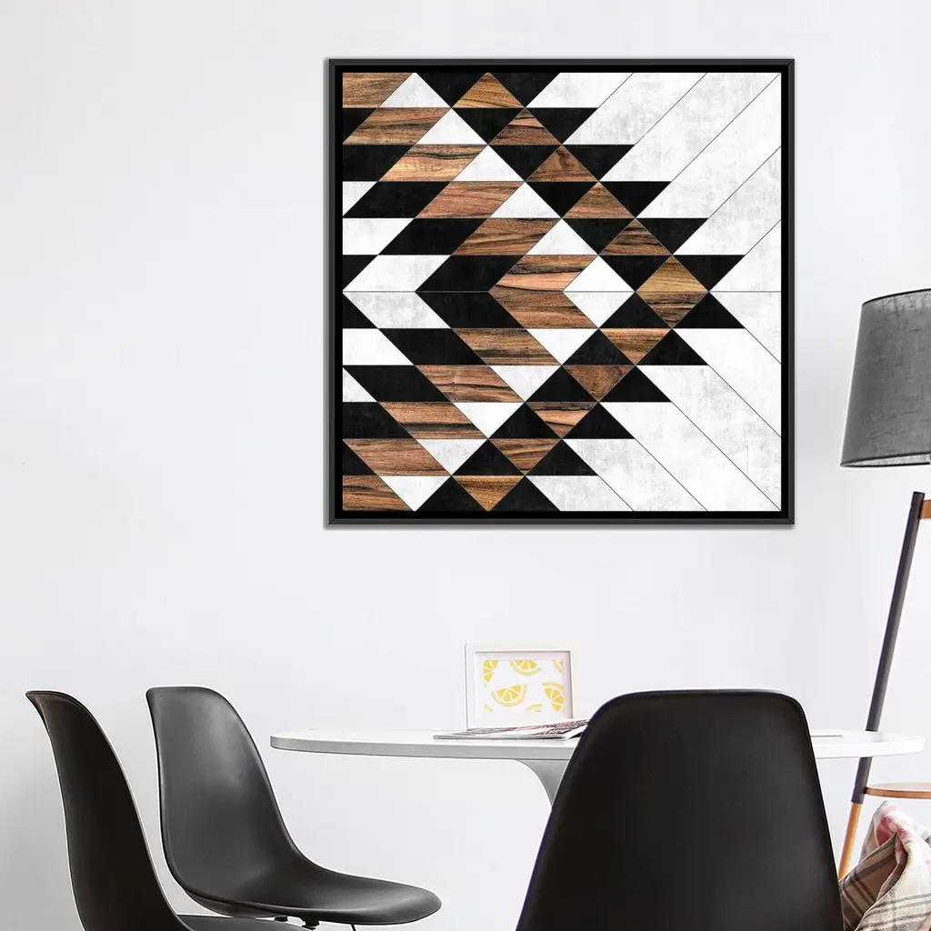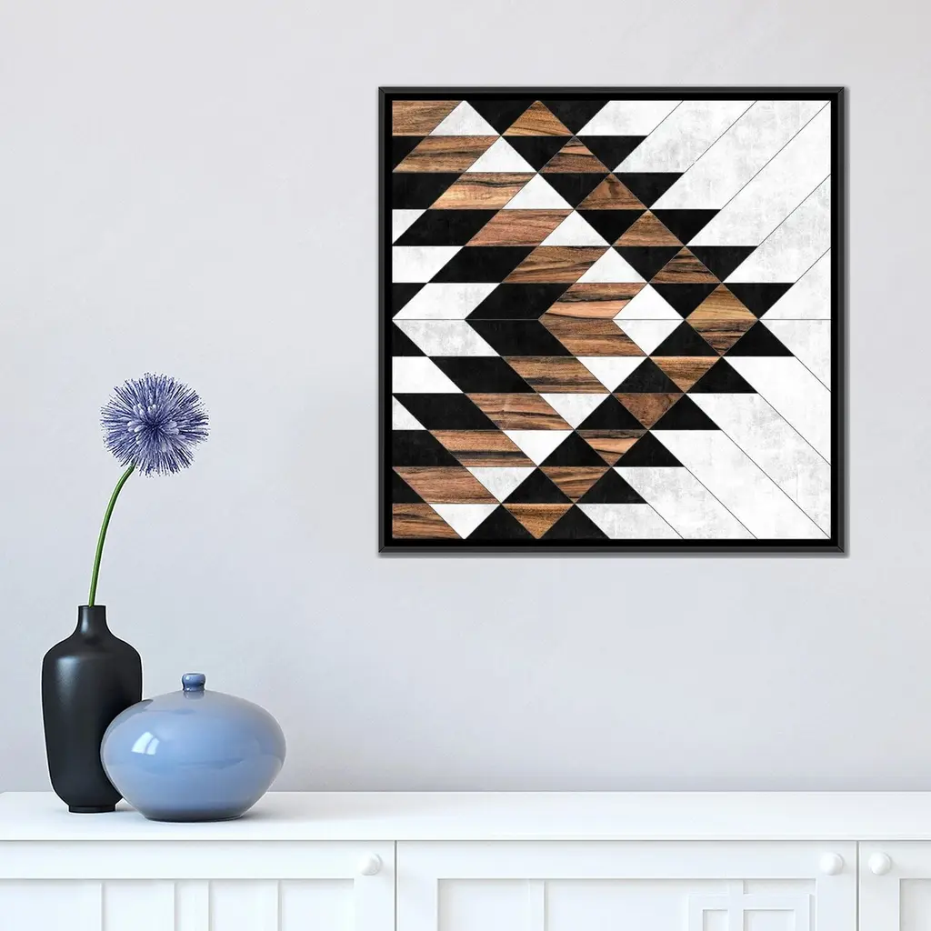 Icanvas "Urban Tribal Pattern No.9 - Aztec - Concrete And Wood" By Zoltan Ratko Framed Canvas Print - Black - 26x26