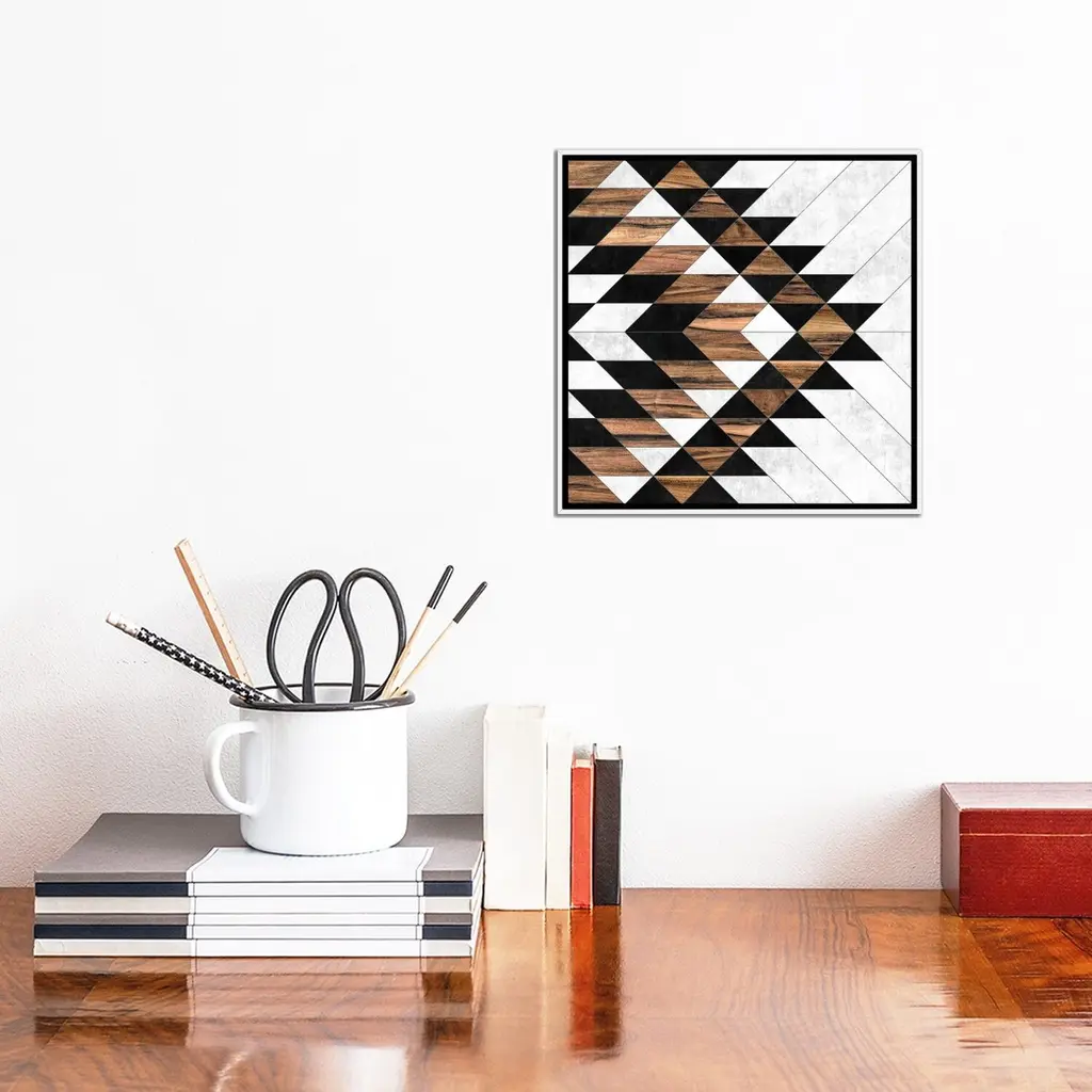 Icanvas "Urban Tribal Pattern No.9 - Aztec - Concrete And Wood" By Zoltan Ratko Framed Canvas Print - Black - 37x37