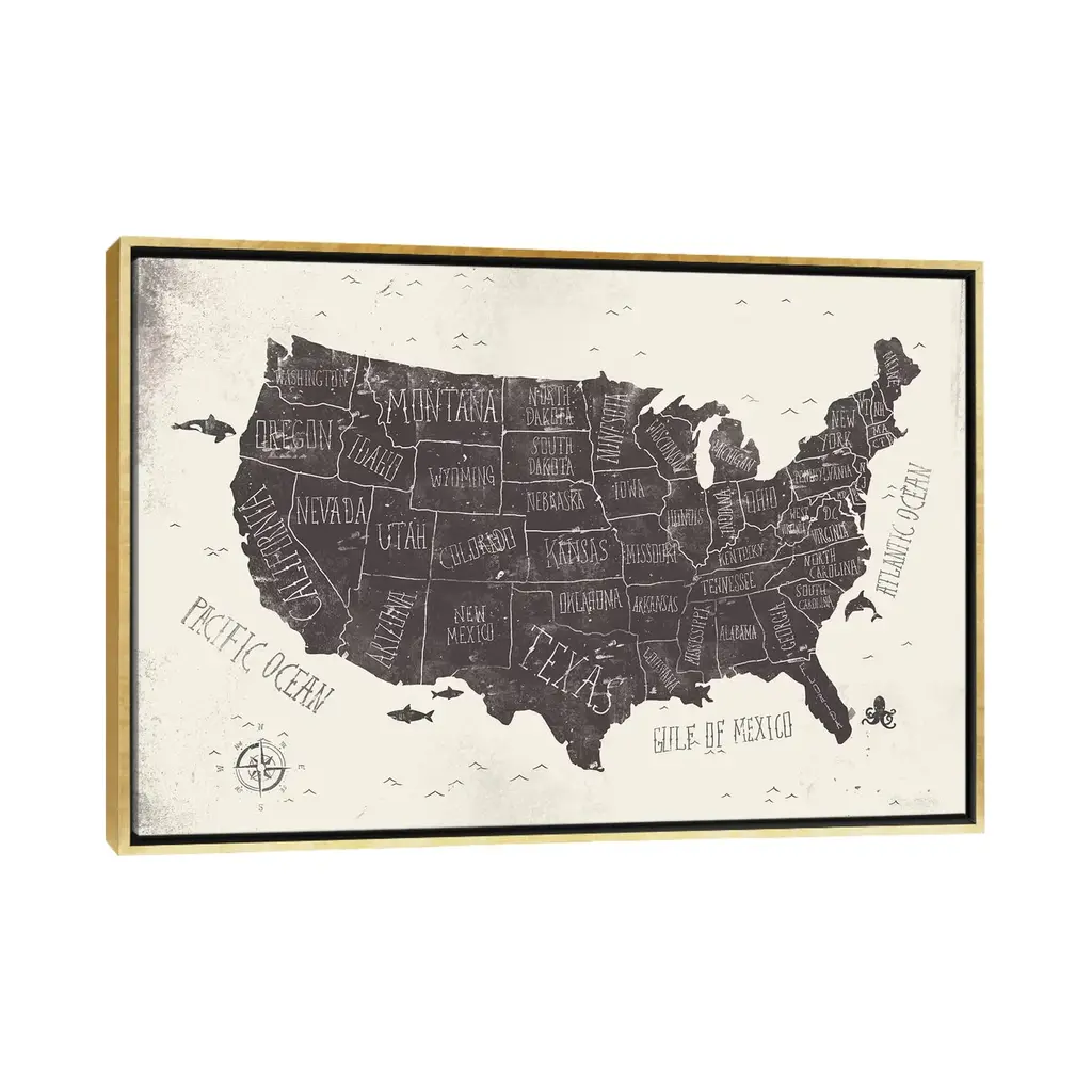 Elevate your space with the iCanvas "USA" by Mike Koubou Framed Art. This high-quality Giclee canvas artwork offers the rich texture and luxurious feel of fine-art paintings. Made in the USA, it features artist-grade canvas that is professionally hand-stretched and stapled over sturdy North American pine-wood bars in a Gallery Wrap style. The artwork is beautifully showcased on a 2-inch thick, elegant hardwood frame, creating a "floating" illusion with a 3/8" space between the art and frame. With fade-resistant archival inks, the vibrant colors and exceptional detail of this contemporary piece will delight for decades to come.Features: