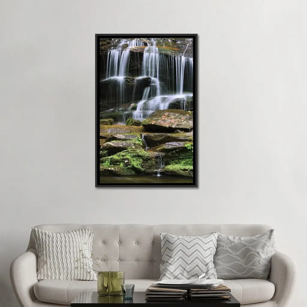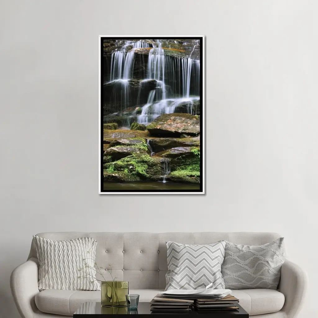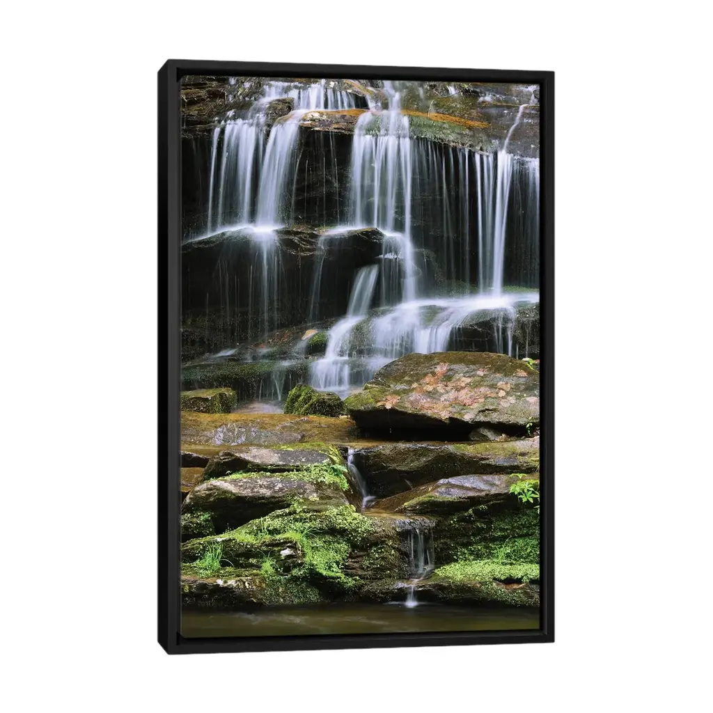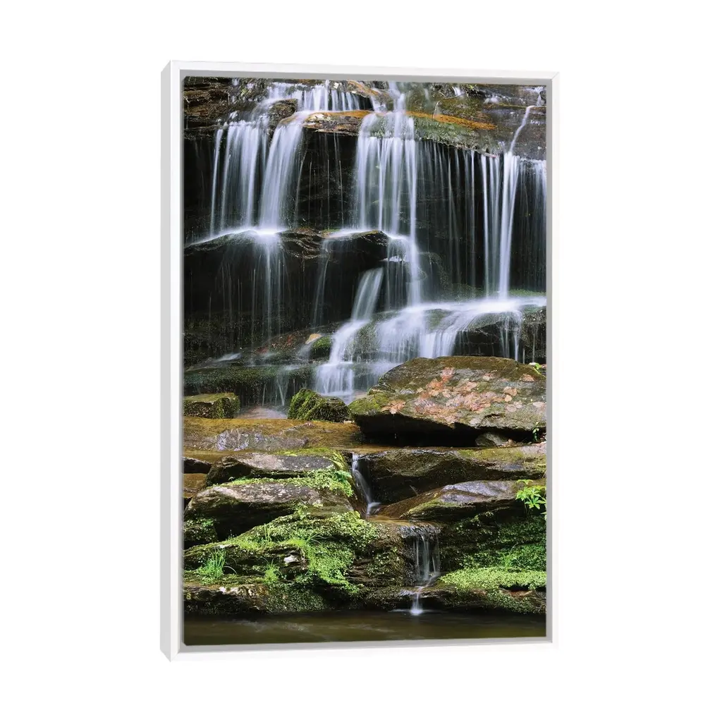 Icanvas "Usa, Tennessee, Great Smoky Mountains National Park. Waterfall." By Jaynes Gallery Framed Canvas Print - White - 40x26