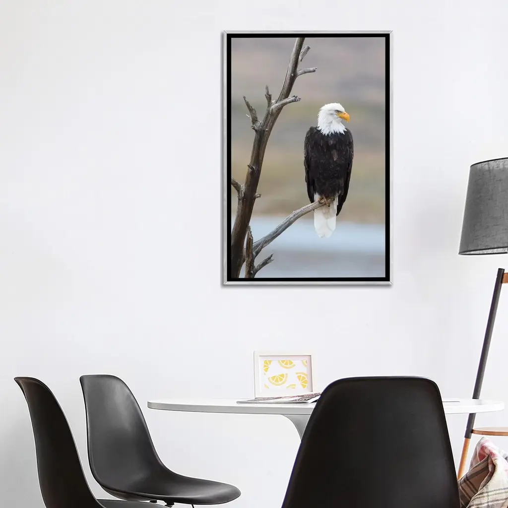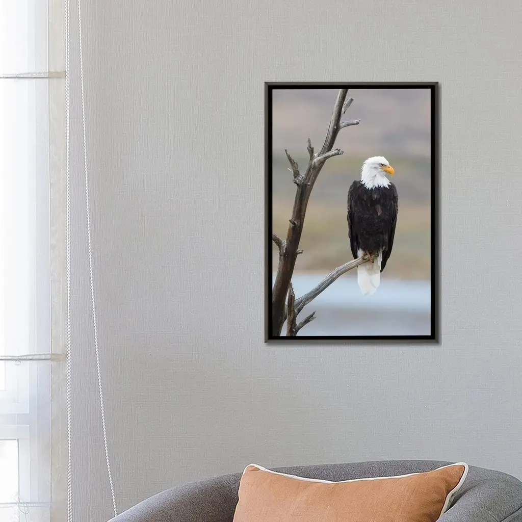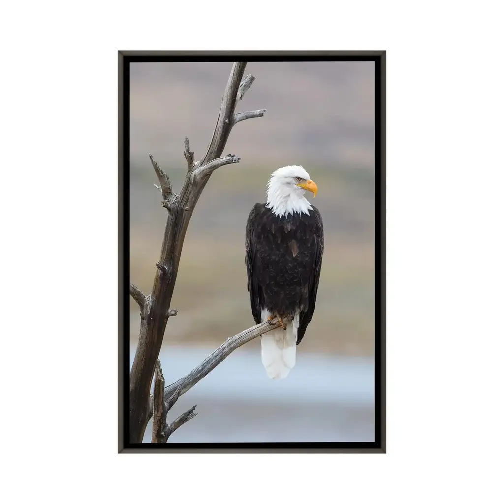 Icanvas "Usa, Wyoming, Sublette County. Adult Bald Eagle Sitting On A Snag Above Soda Lake." By Elizabeth Boehm Framed - Charcoal - 26x18