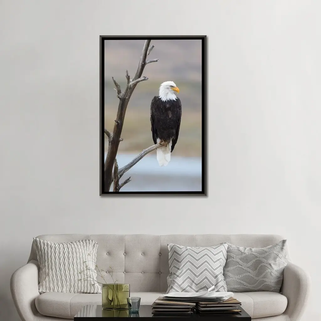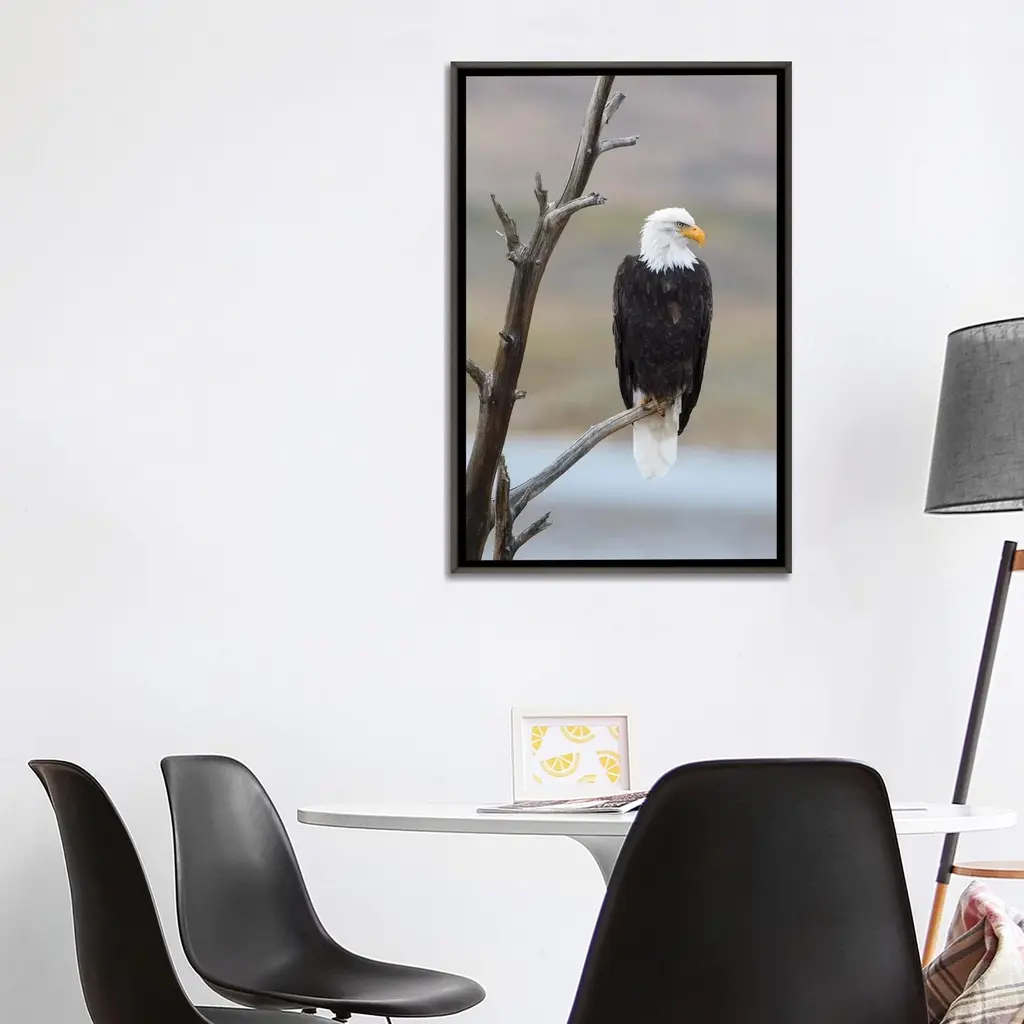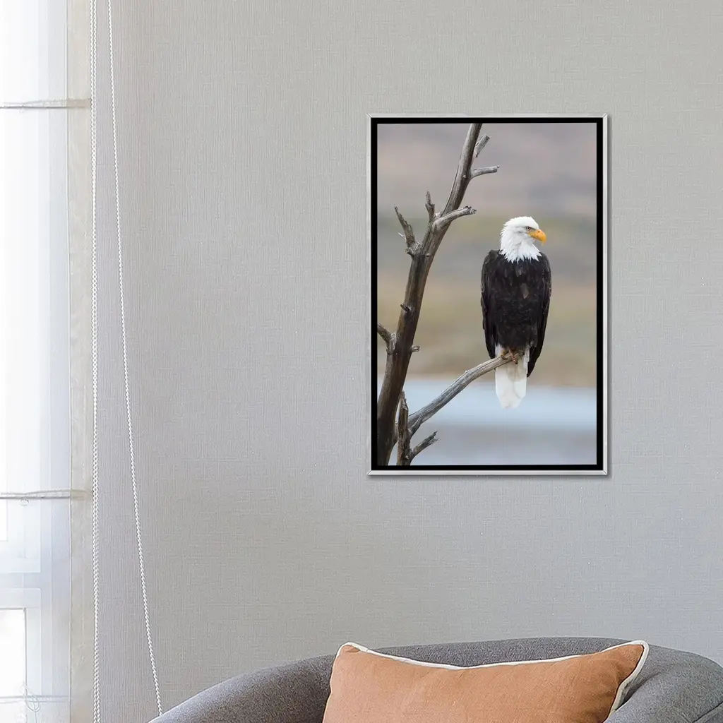 Icanvas "Usa, Wyoming, Sublette County. Adult Bald Eagle Sitting On A Snag Above Soda Lake." By Elizabeth Boehm Framed - Charcoal - 26x18