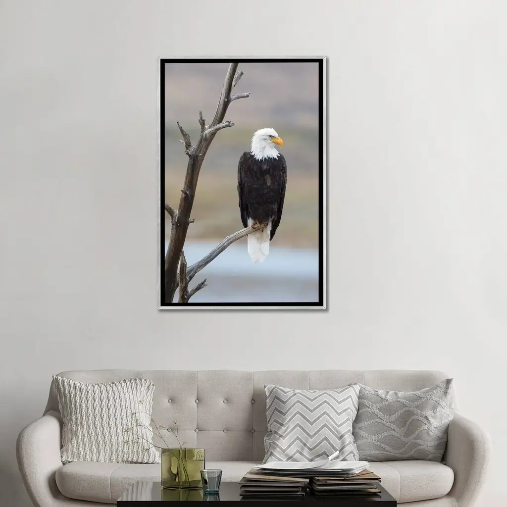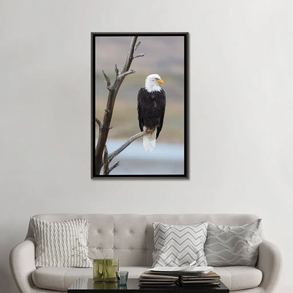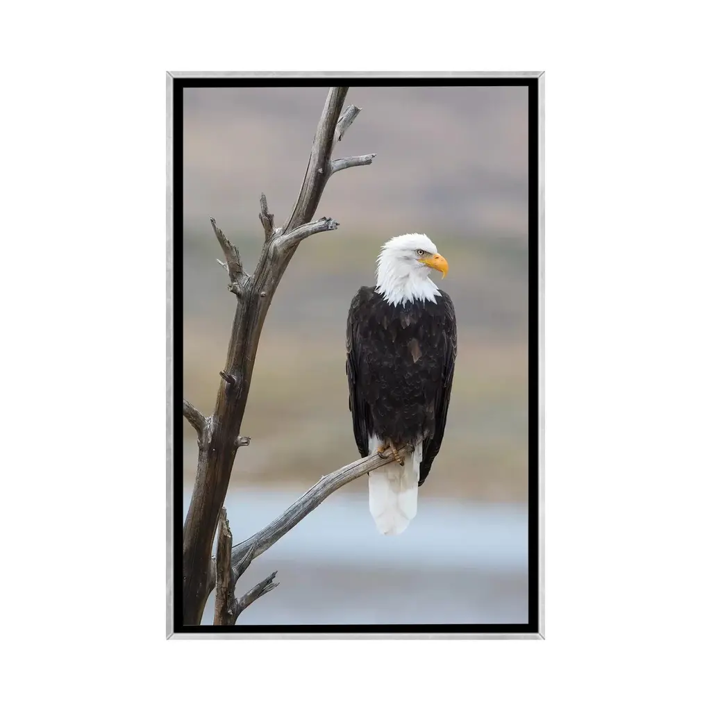 Icanvas "Usa, Wyoming, Sublette County. Adult Bald Eagle Sitting On A Snag Above Soda Lake." By Elizabeth Boehm Framed - Charcoal - 40x26