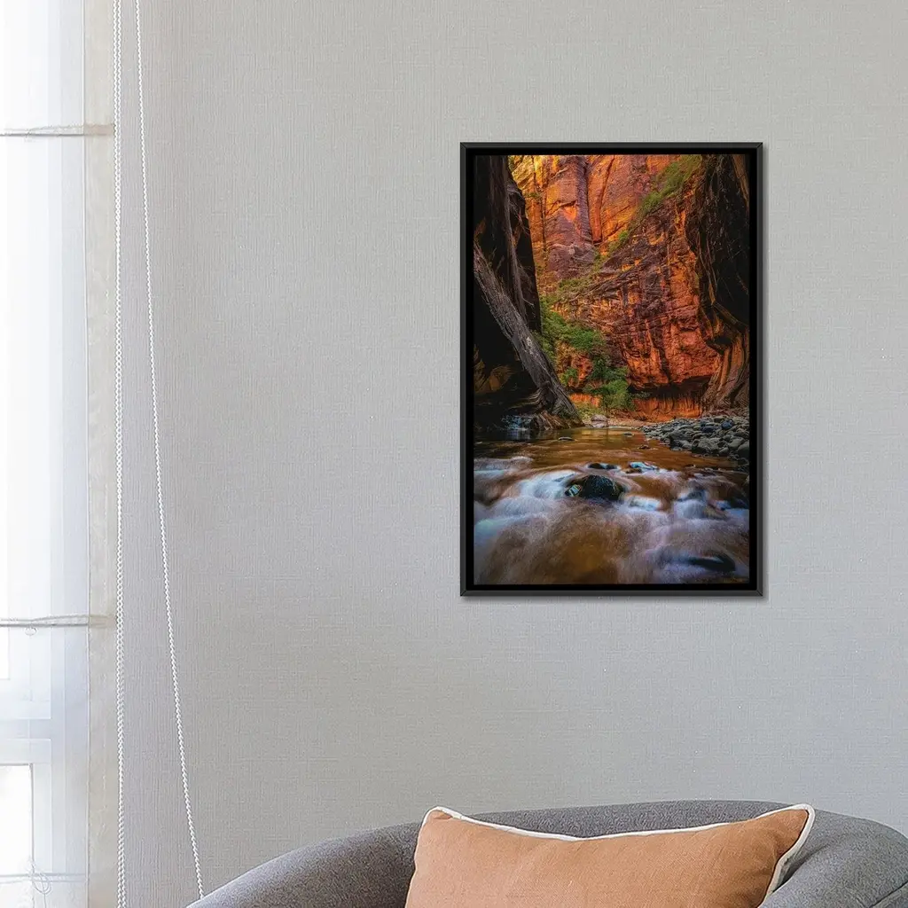 Icanvas "Utah Zion National Park The Narrows Hike I" By Alex G Perez Framed Canvas Print - Gold - 26x18