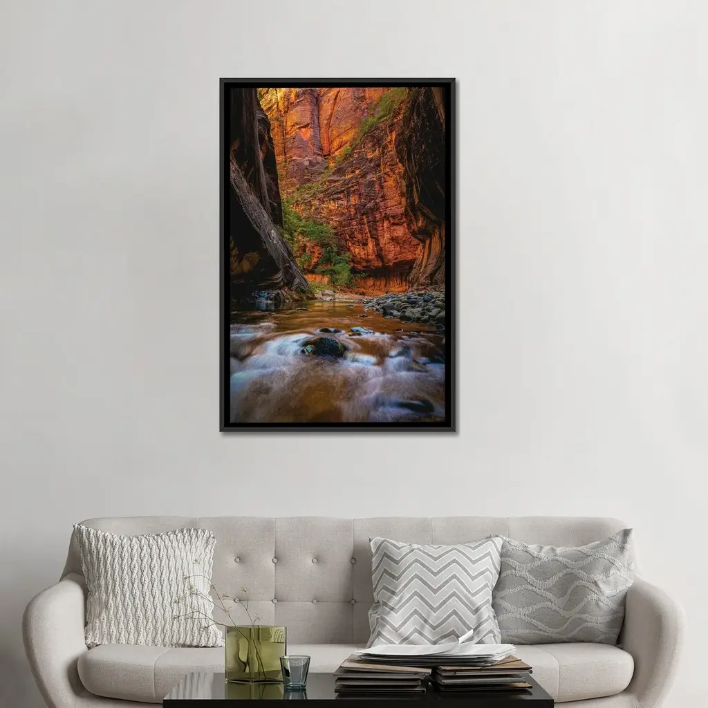 Icanvas "Utah Zion National Park The Narrows Hike I" By Alex G Perez Framed Canvas Print - White - 48x32