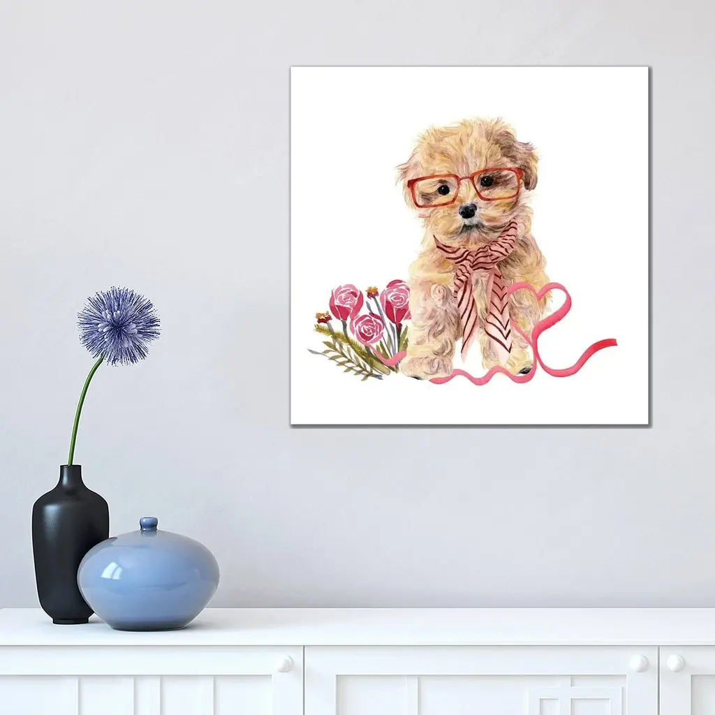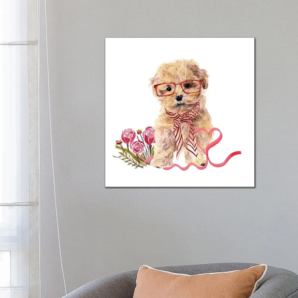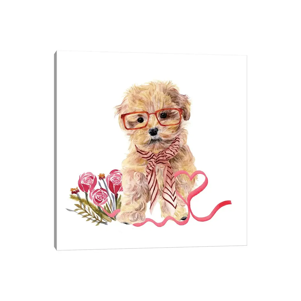Icanvas "Valentine Puppy Ii" By Melissa Wang Canvas Print - 12x12x1.5