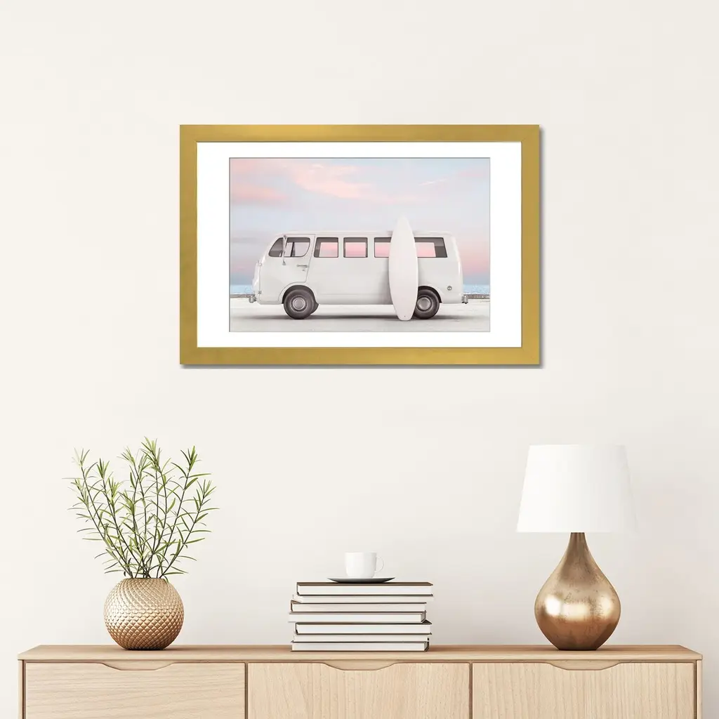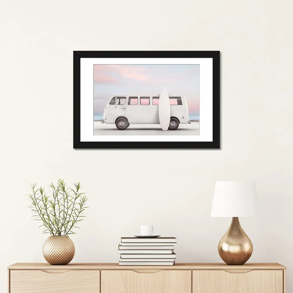 Icanvas "Van And Surfboard" By Tiny Treasure Prints - Black - 24x32x1