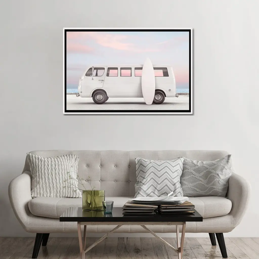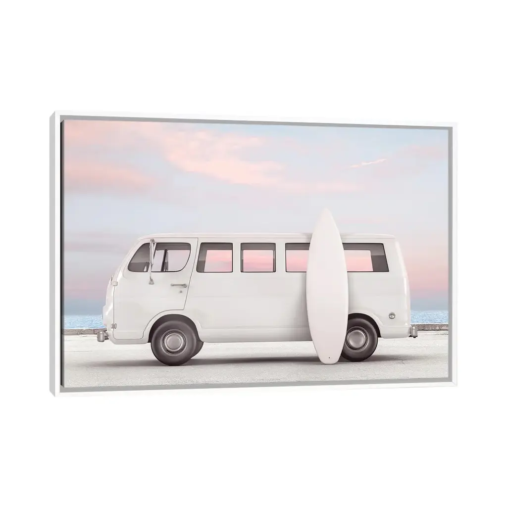 Icanvas "Van And Surfboard" By Tiny Treasure Prints Framed Canvas Print - Gold - 18x26