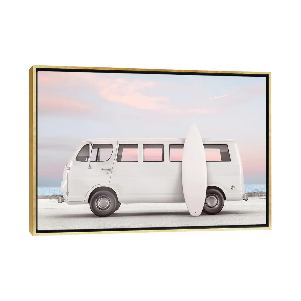 Icanvas "Van And Surfboard" By Tiny Treasure Prints Framed Canvas Print - Gold - 26x40