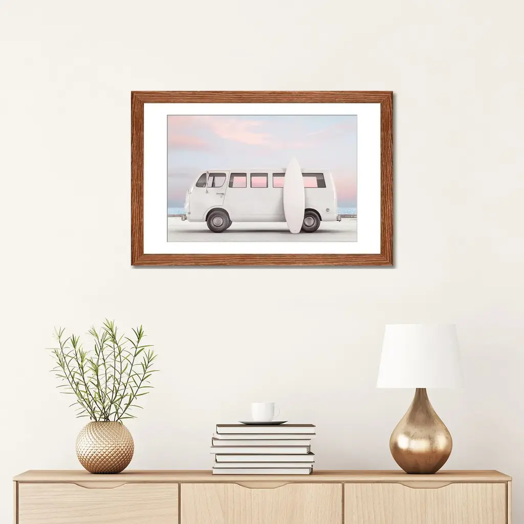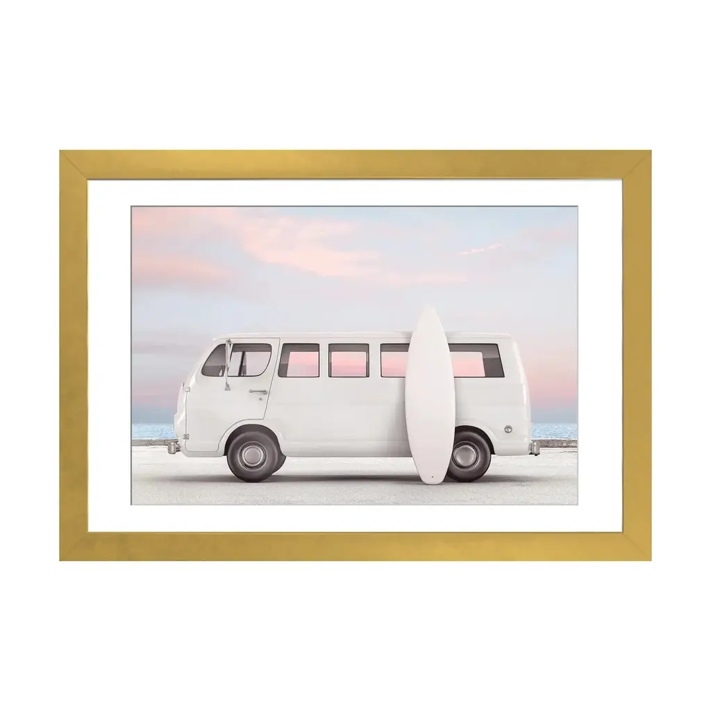 Icanvas "Van And Surfboard" By Tiny Treasure Prints - Gold - 24x32x1