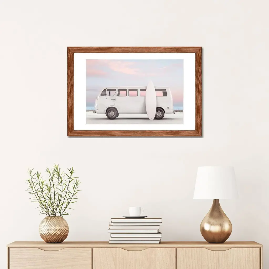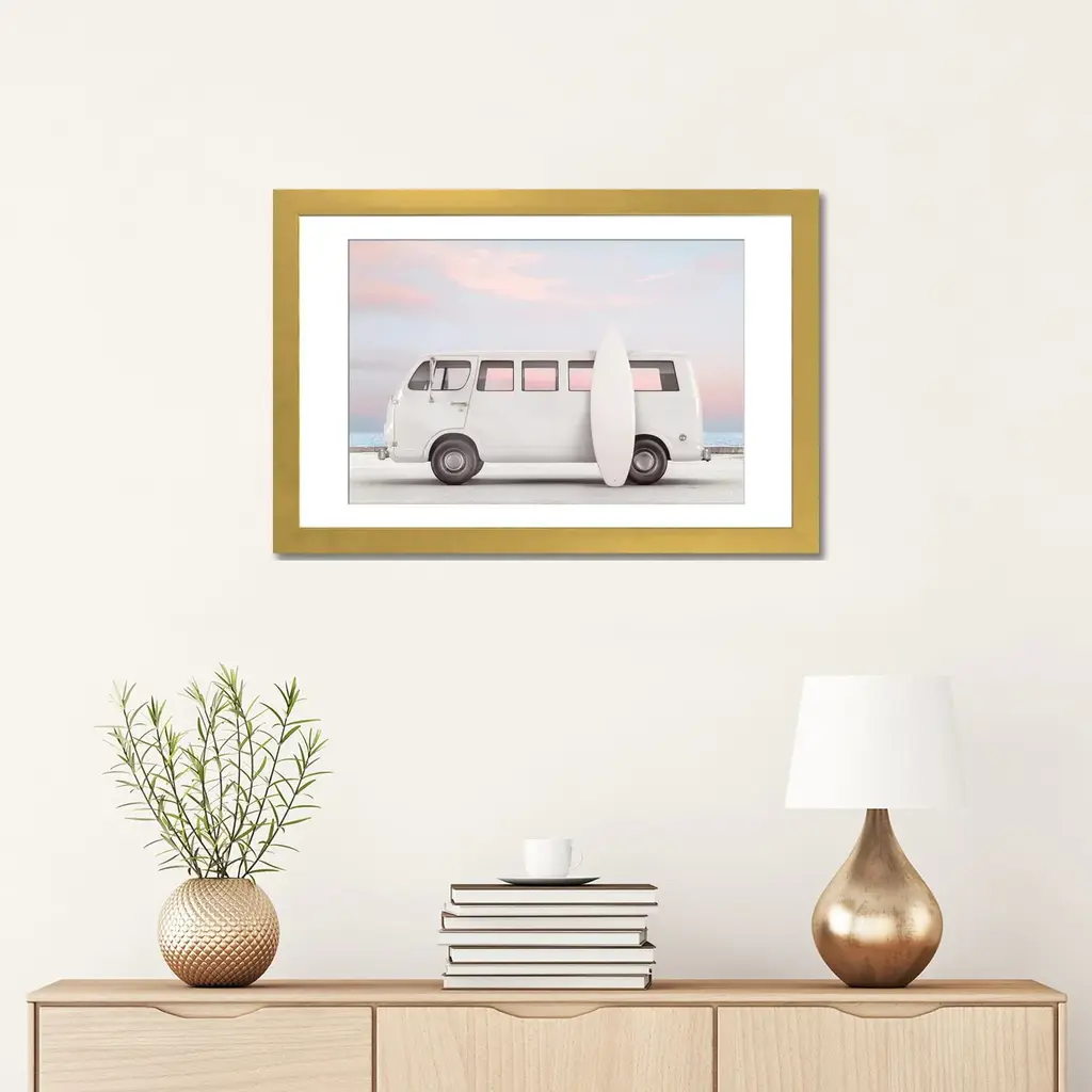 Icanvas "Van And Surfboard" By Tiny Treasure Prints - Natural - 16x24x1