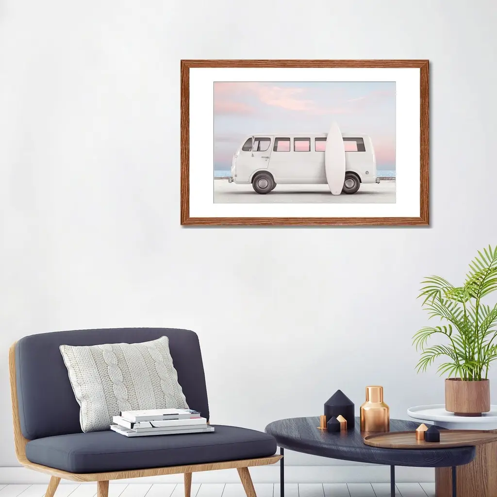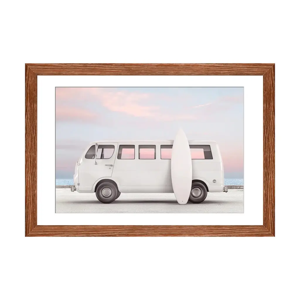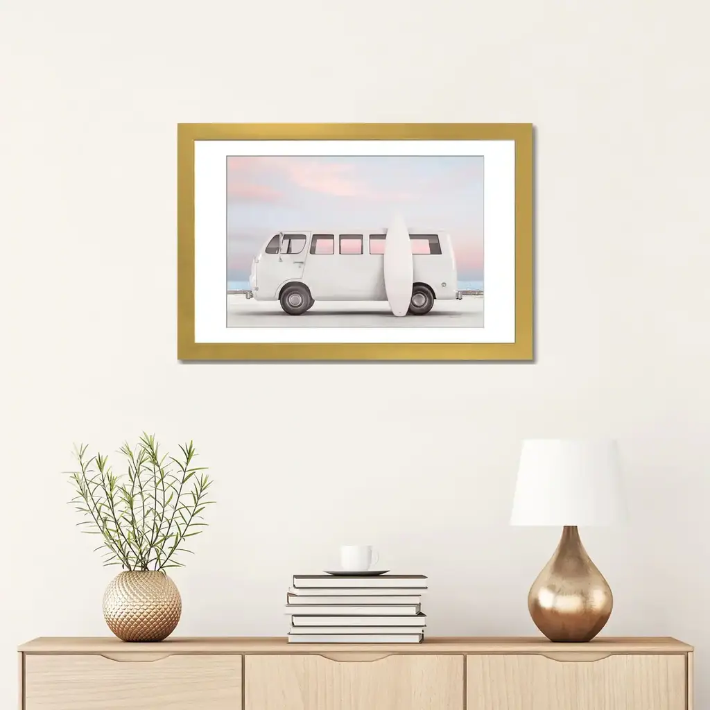 Icanvas "Van And Surfboard" By Tiny Treasure Prints - Natural - 24x32x1