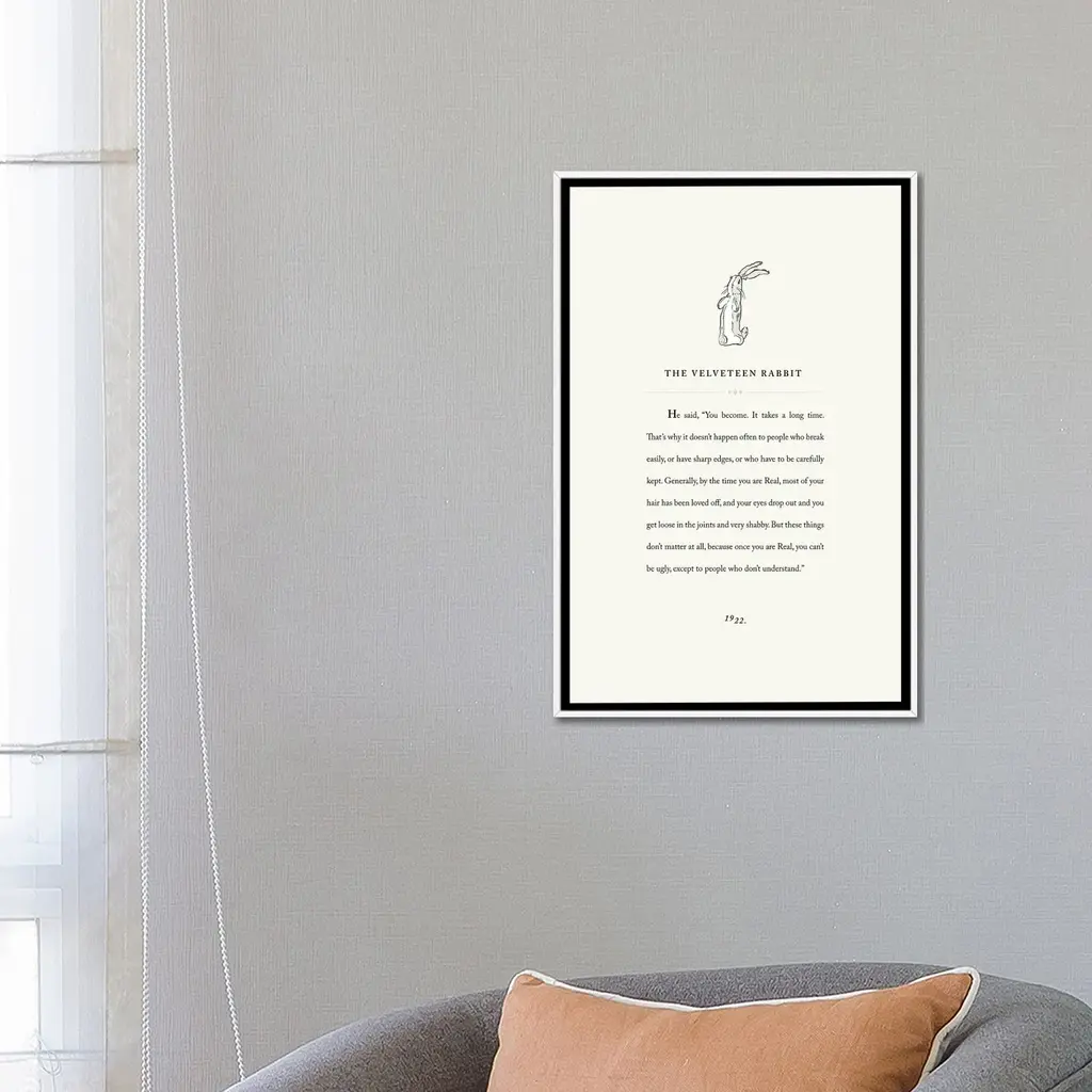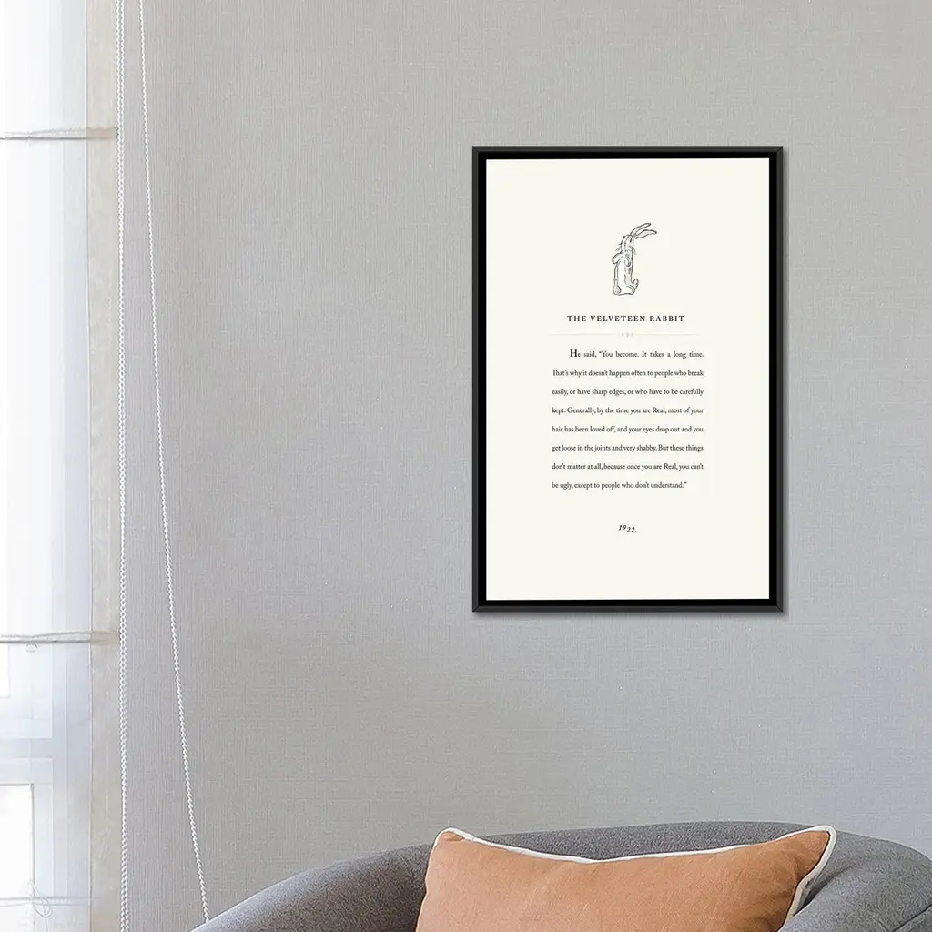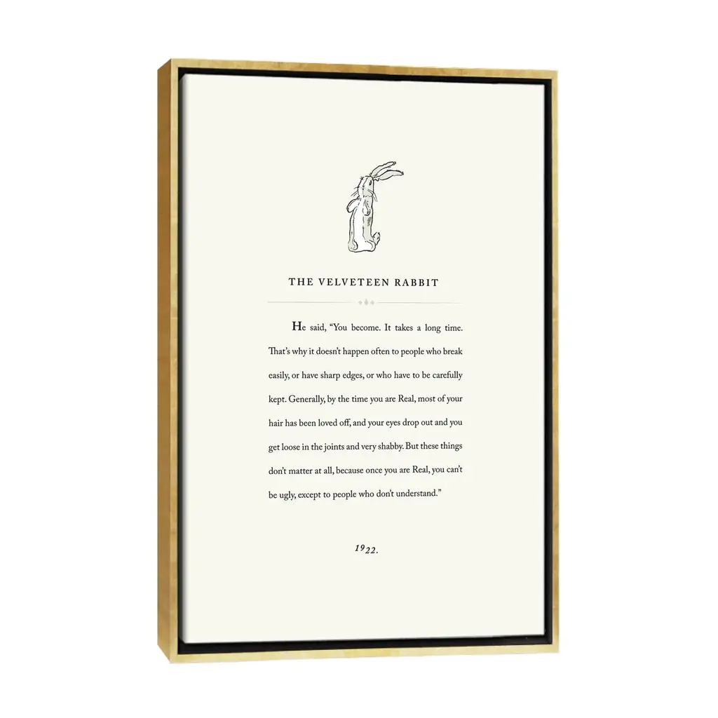 Icanvas "Velveteen Rab3it Book Page Illustration" By Holly Van Wyck Framed Canvas Print - Gold - 26x18