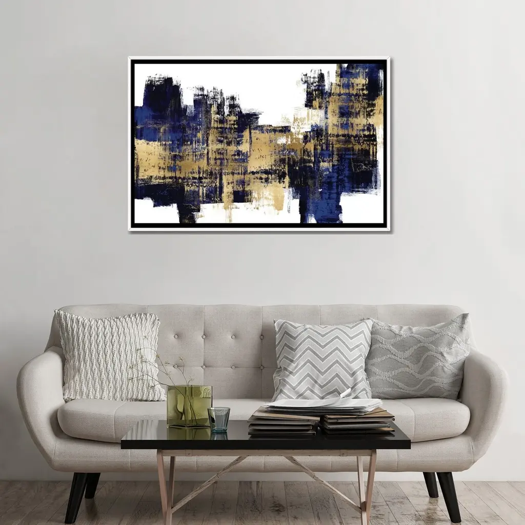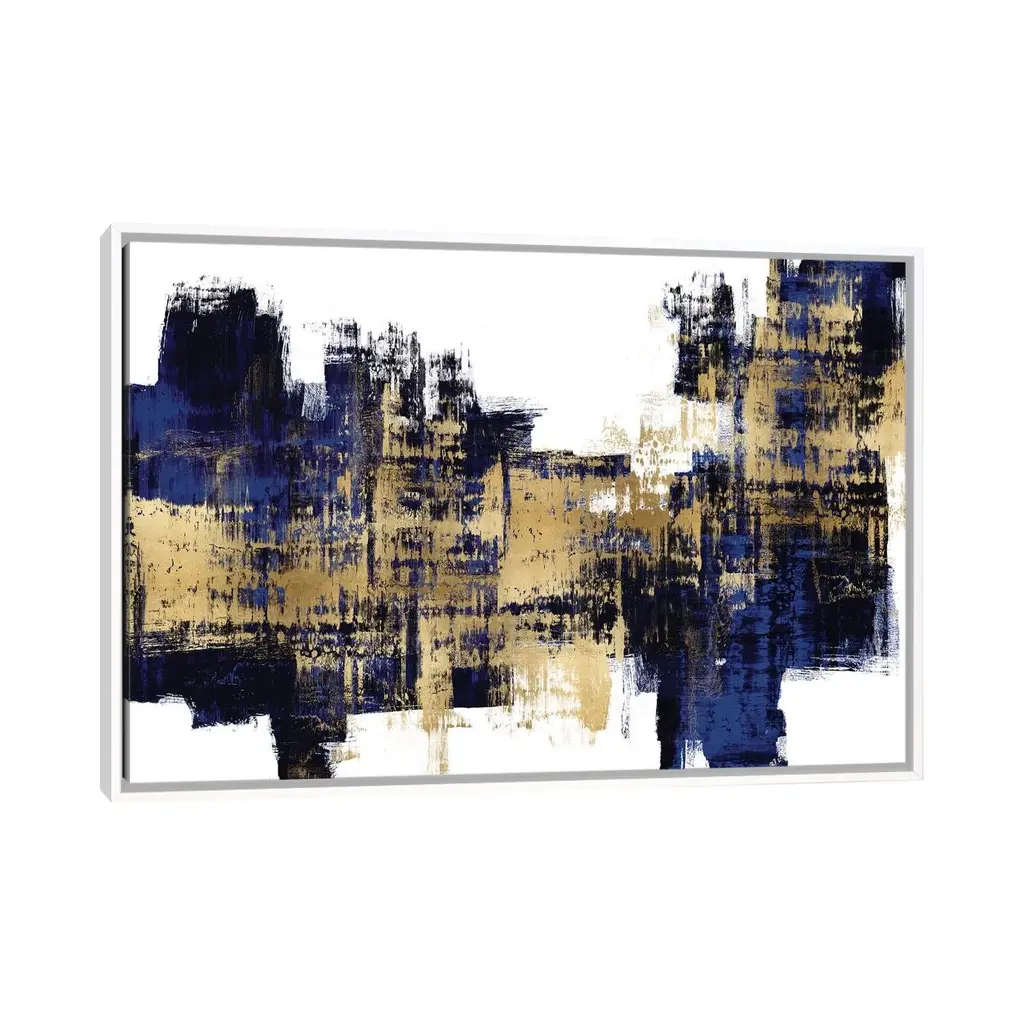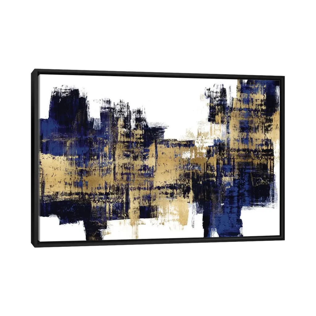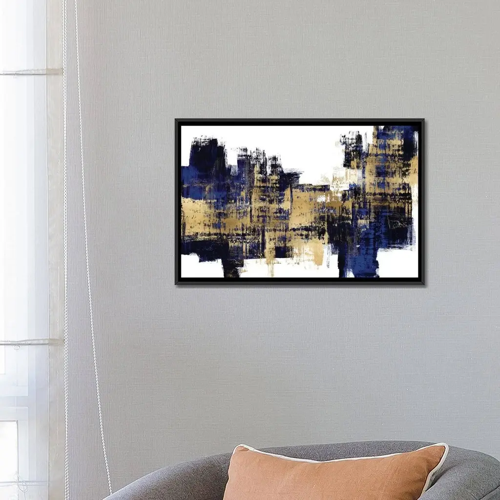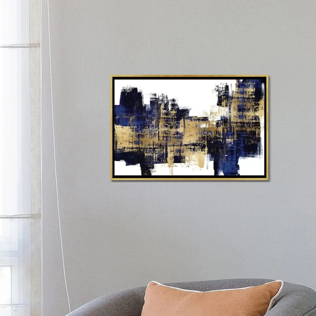 Icanvas "Vibrant Gold On Blue" By Alex Wise Framed Canvas Print - Black - 18x26
