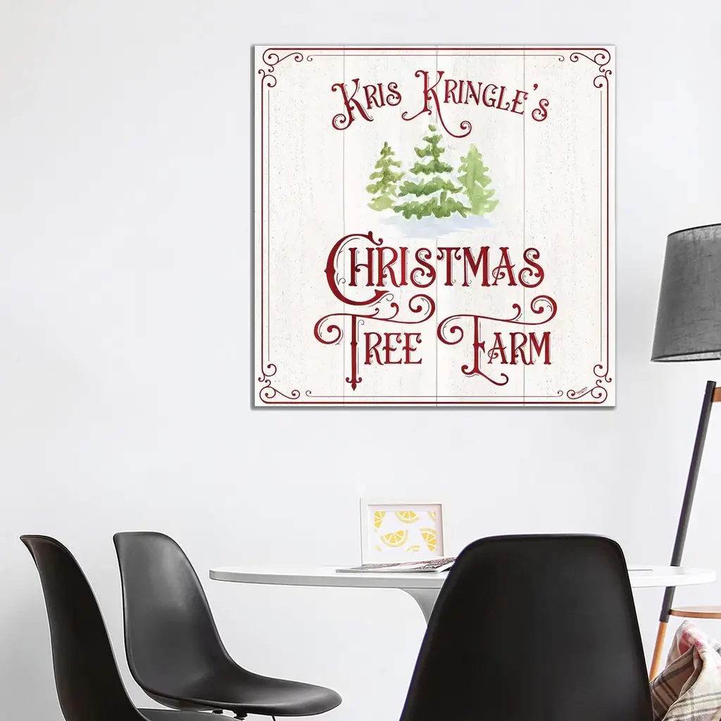 Icanvas "Vintage Christmas Signs Vi-Tree Farm" By Tara Reed Canvas Print - 12x12x1.5