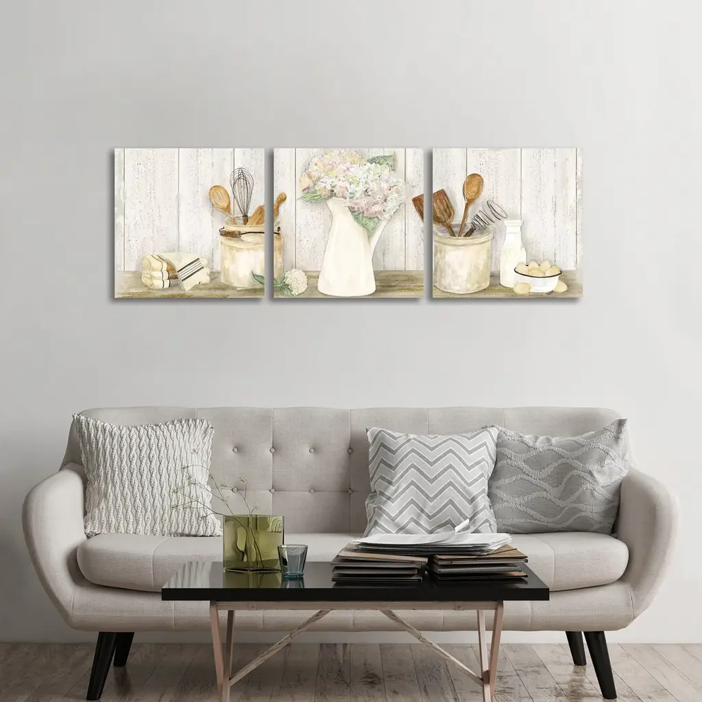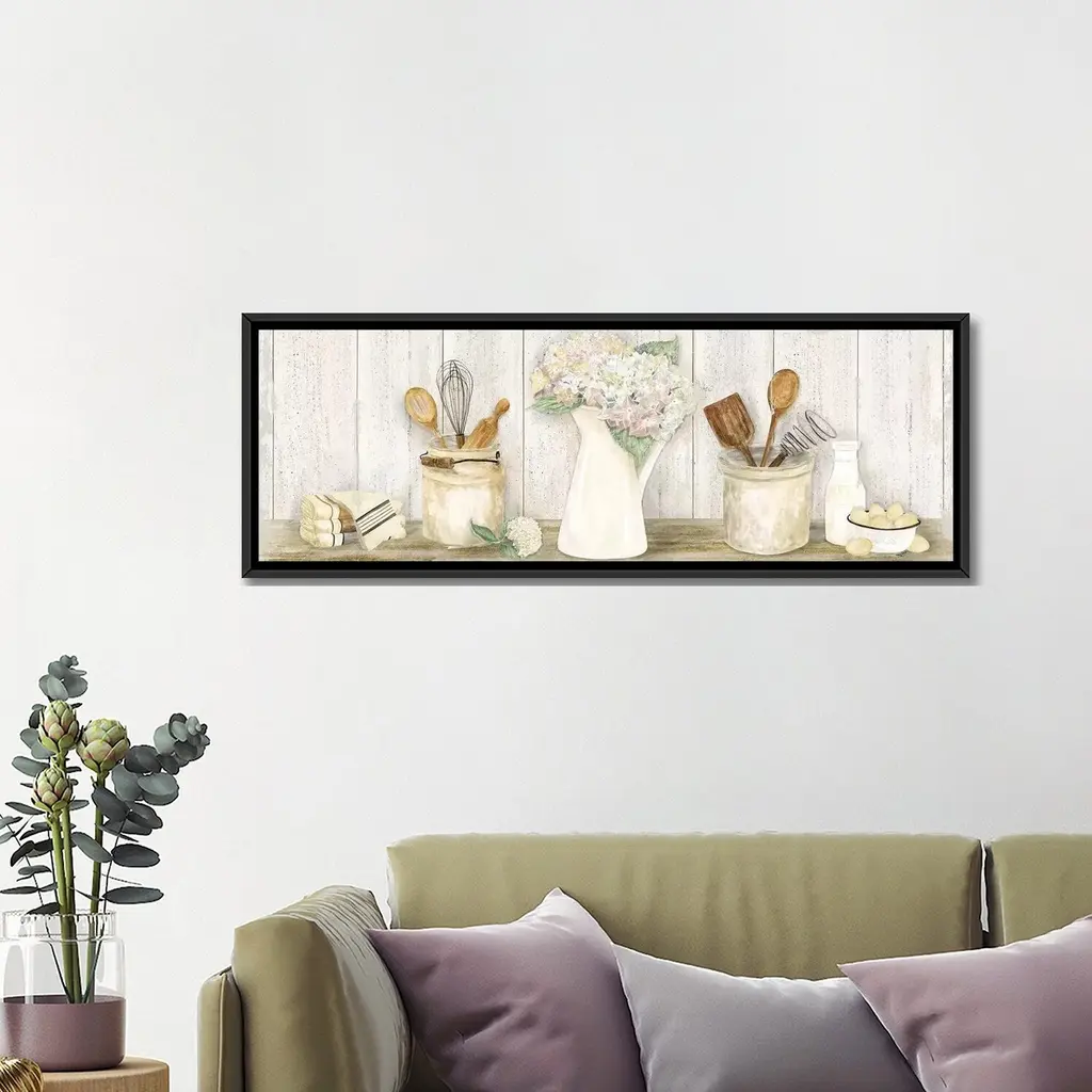 Icanvas "Vintage Kitchen Panel" By Tara Reed Framed Canvas Print - 16x48 - Black