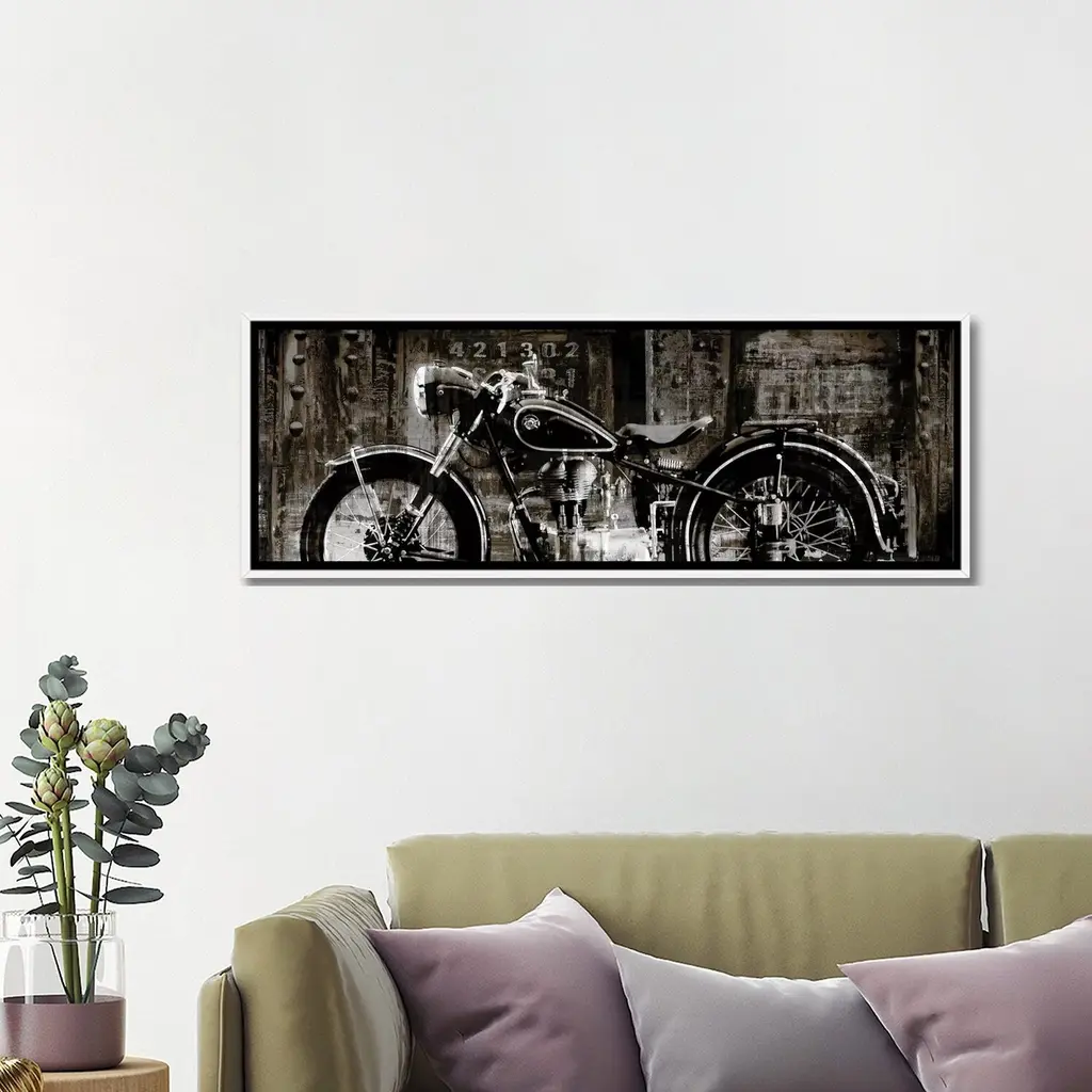 Icanvas "Vintage Motorcycle" By Dylan Matthews Framed Canvas Print - 16x48 - White