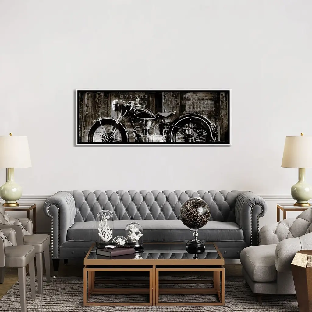 Icanvas "Vintage Motorcycle" By Dylan Matthews Framed Canvas Print - 20x60 - White