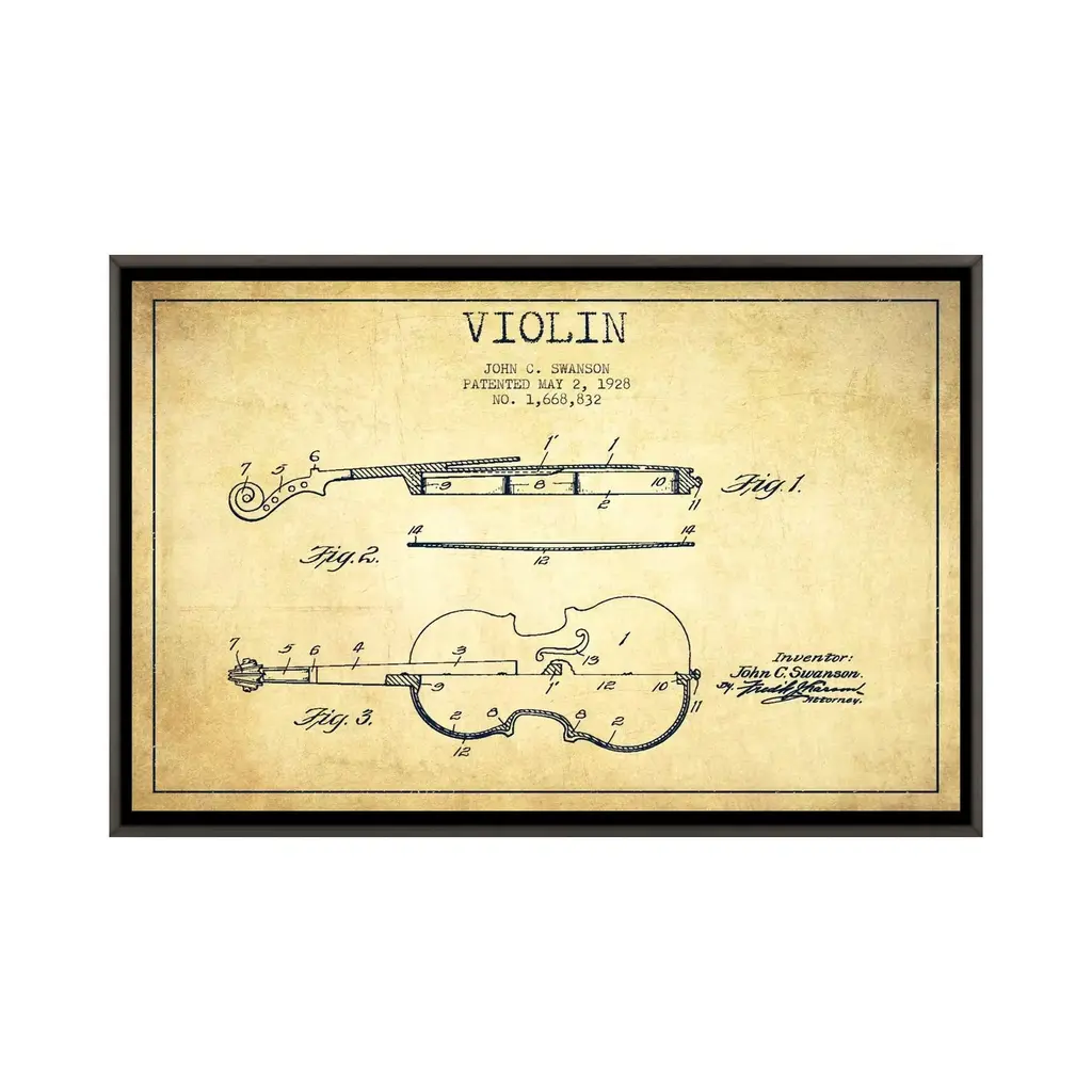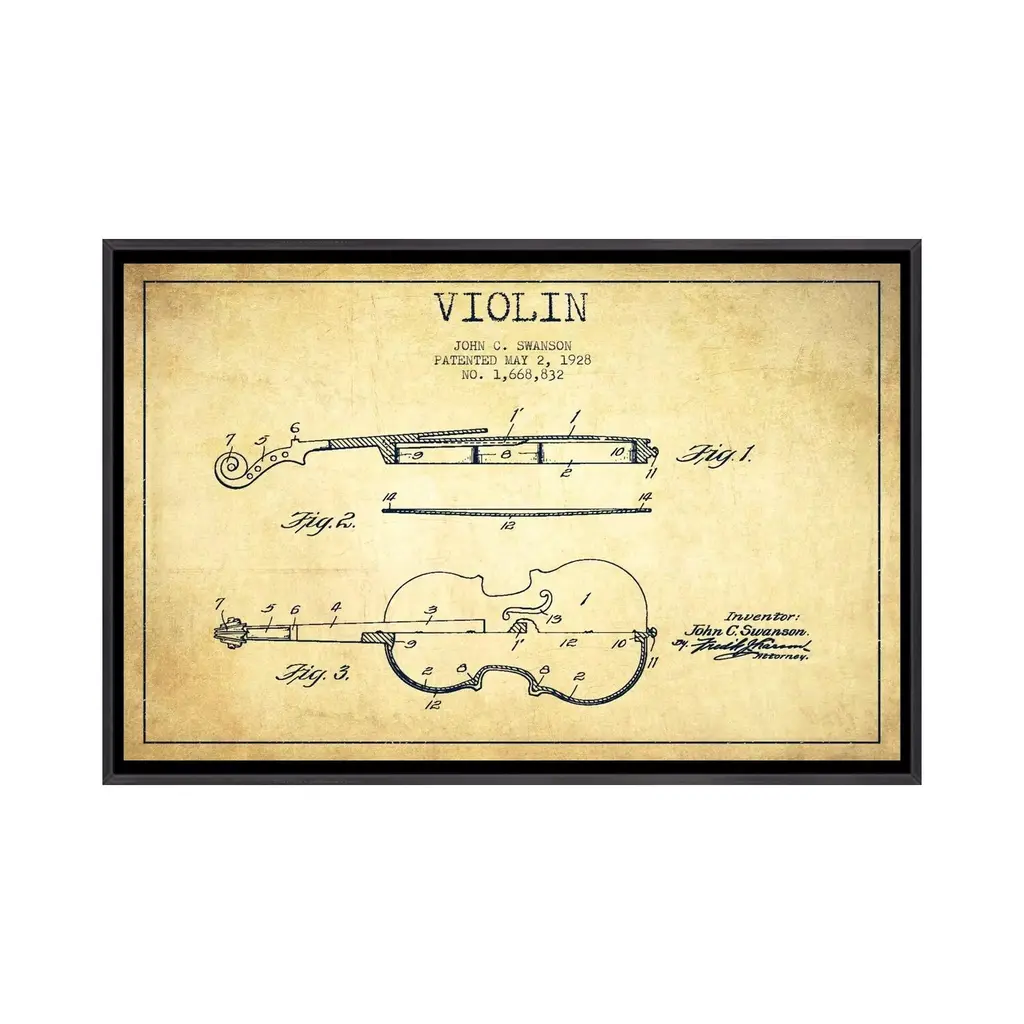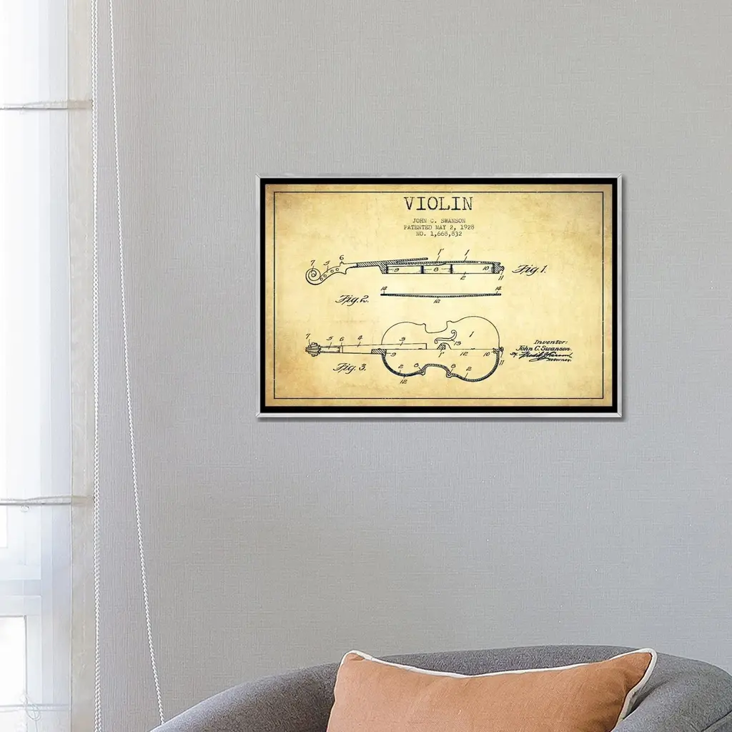 Icanvas "Violin Vintage Patent Blueprint" By Aged Pixel Framed - Charcoal - 18x26