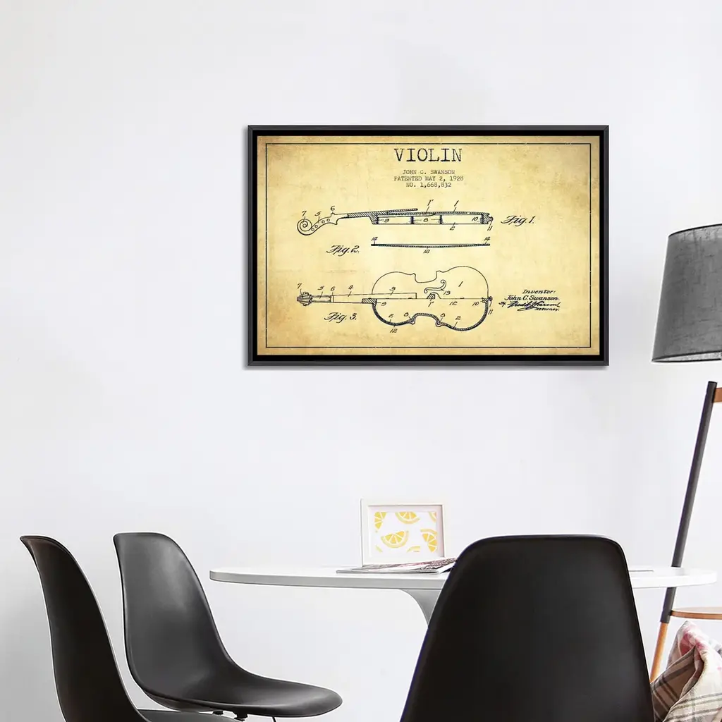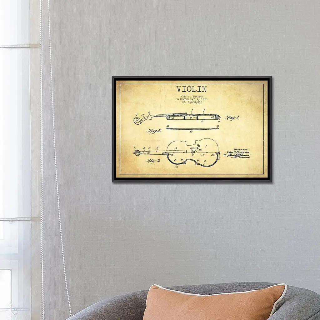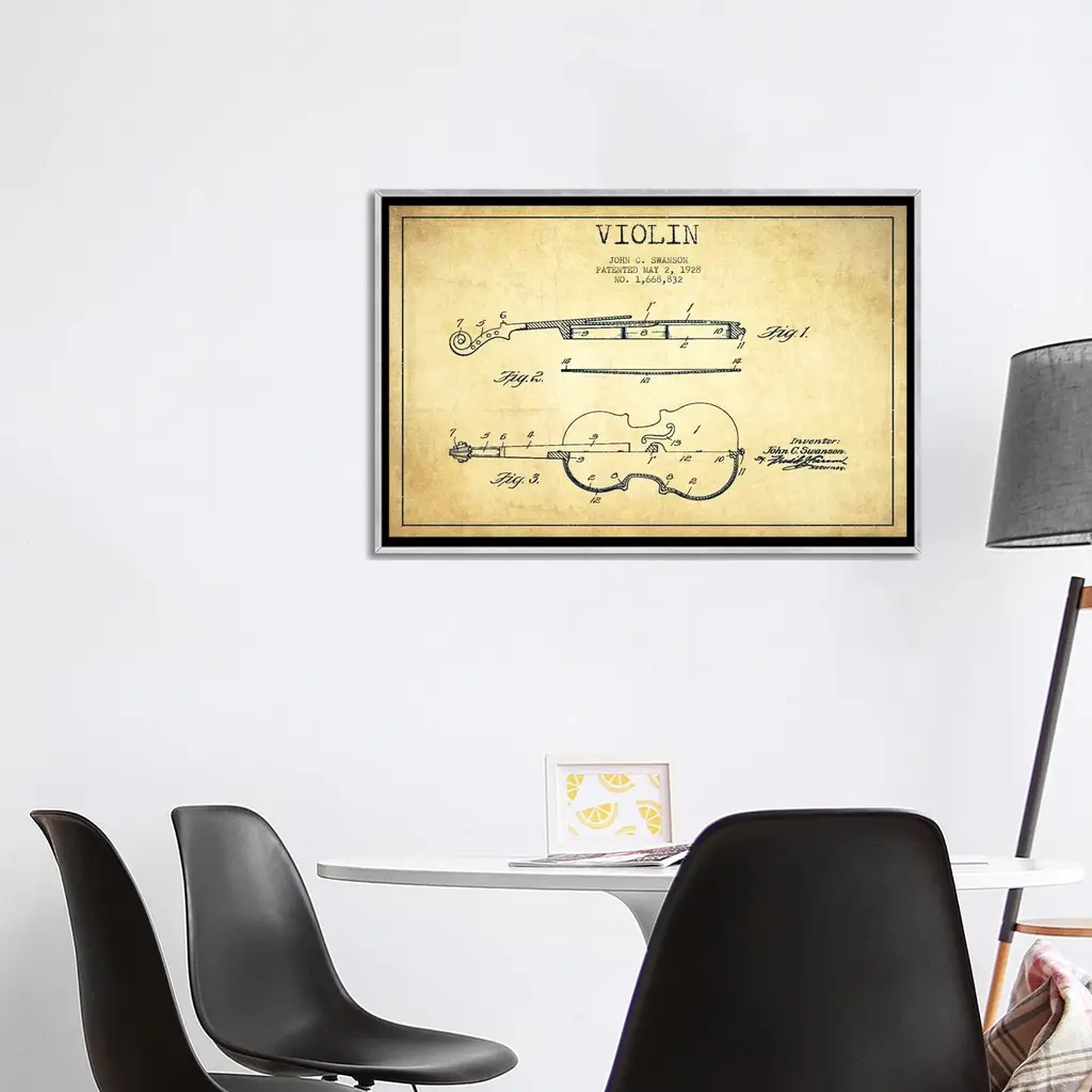 Icanvas "Violin Vintage Patent Blueprint" By Aged Pixel Framed - Charcoal - 18x26