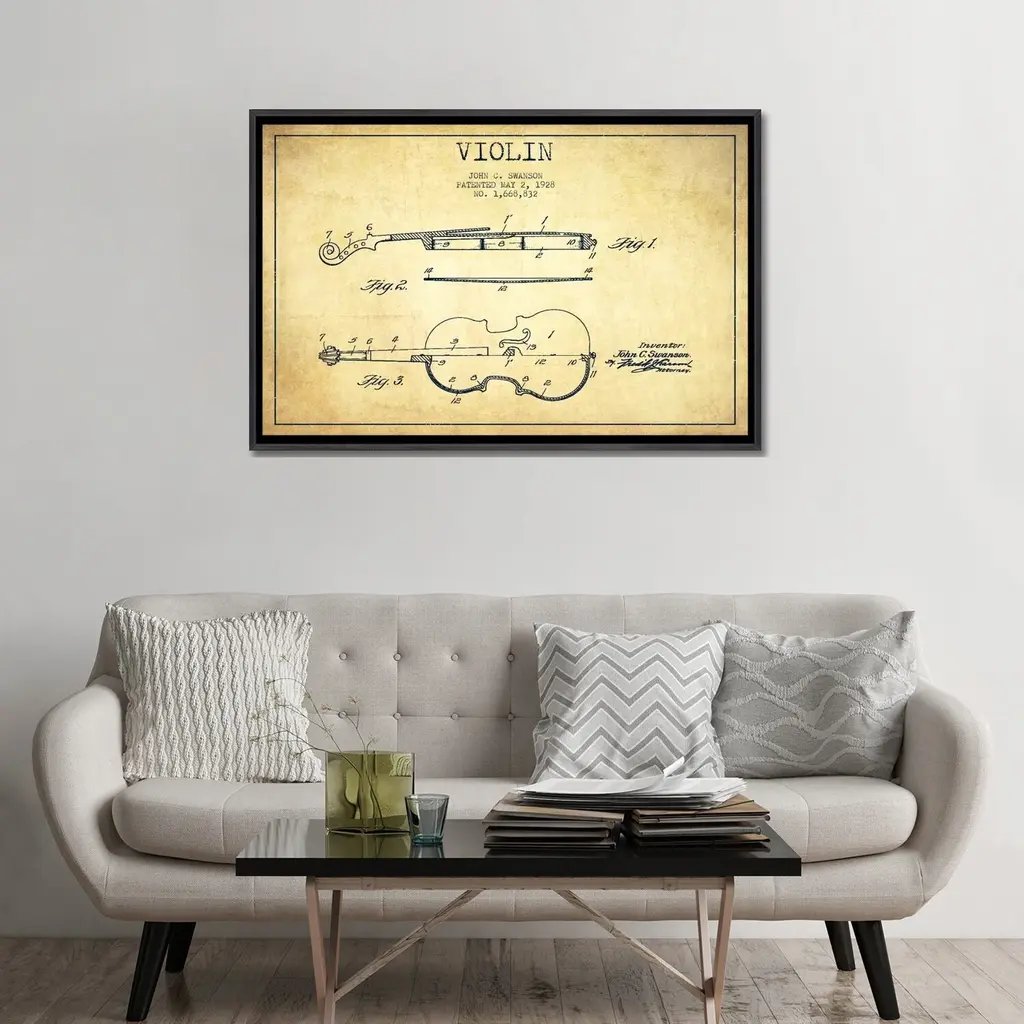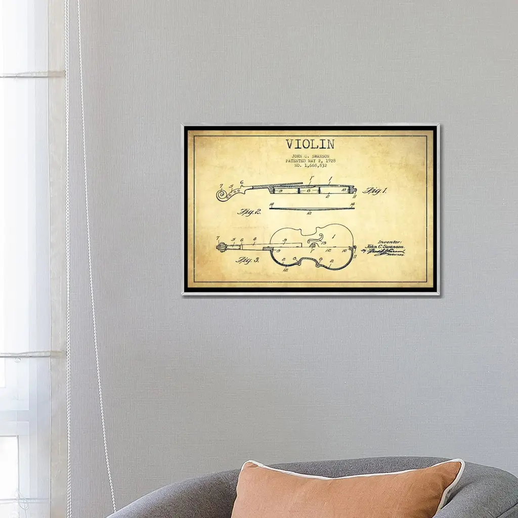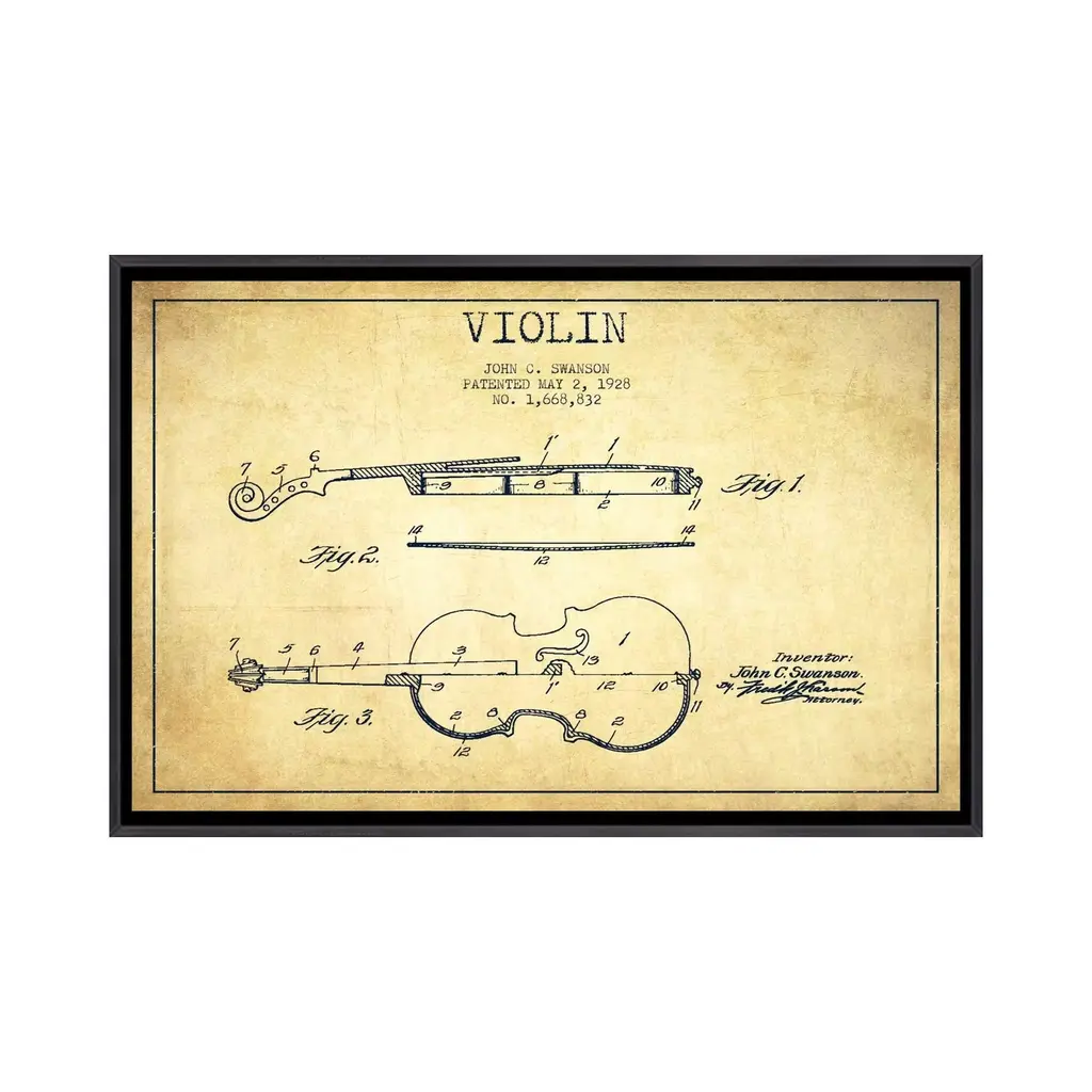 Icanvas "Violin Vintage Patent Blueprint" By Aged Pixel Framed - Charcoal - 26x40