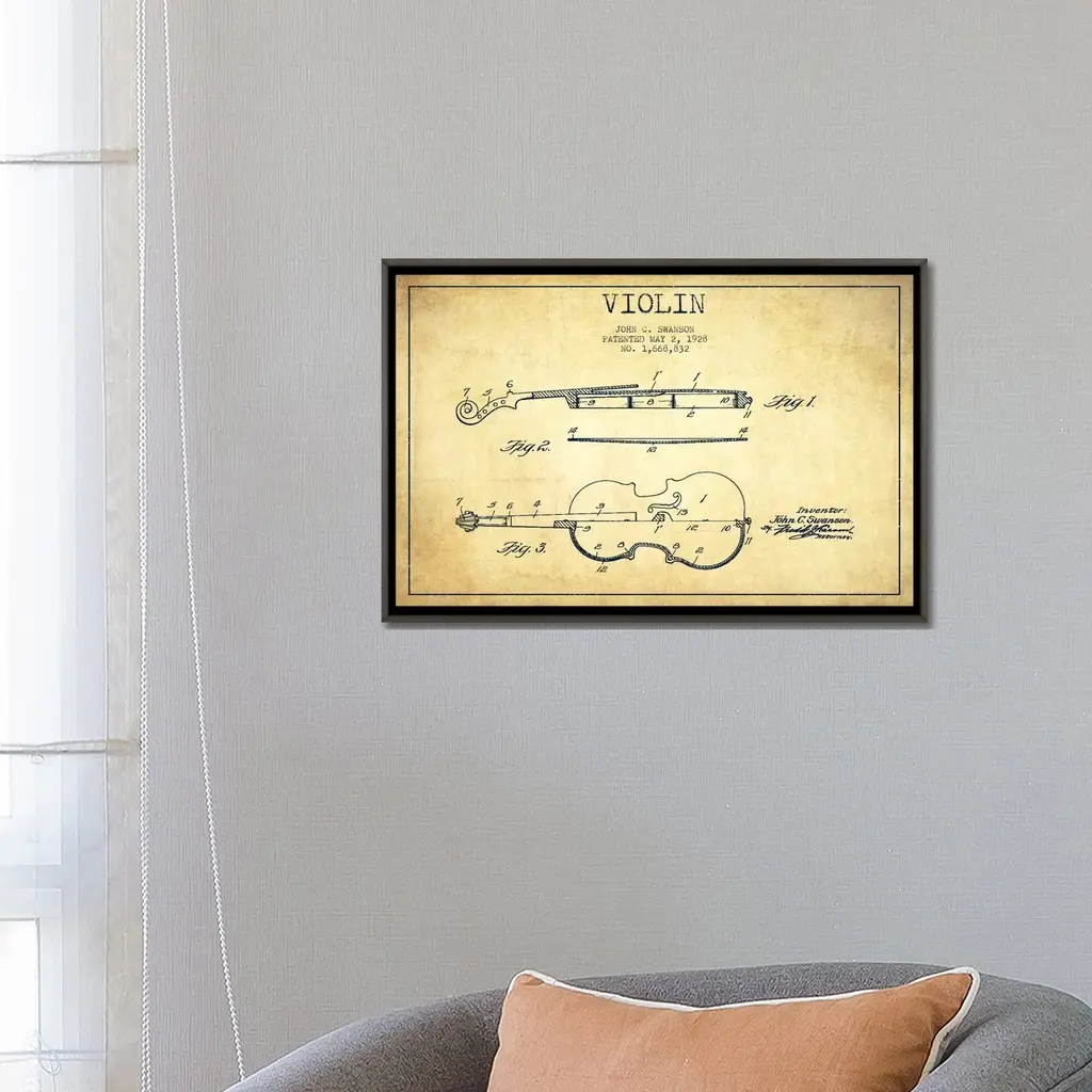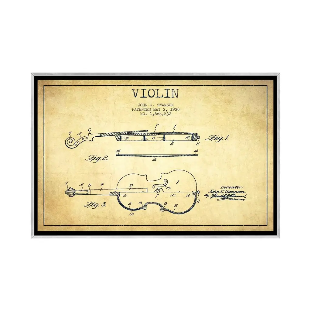 Icanvas "Violin Vintage Patent Blueprint" By Aged Pixel Framed - Ebony - 18x26