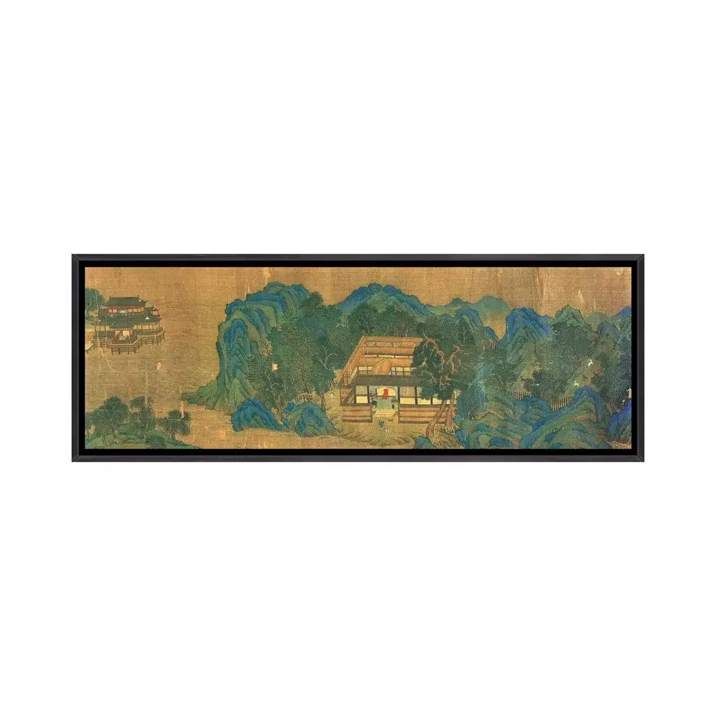 Icanvas "Wang Chuan's Residence, After The Painting Style And Poetry Of Wang Wei " By Qiu Ying Framed - 12x36 - Charcoal