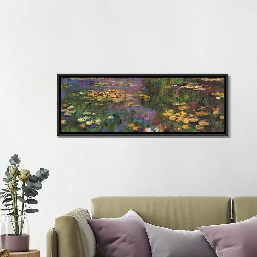 Icanvas "Water Lilies" By Claude Monet Framed Canvas Print - 16x48 - Black