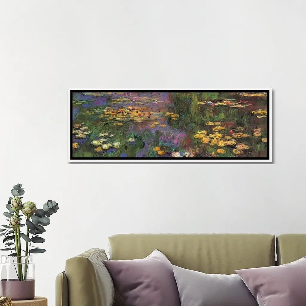 Icanvas "Water Lilies" By Claude Monet Framed Canvas Print - 16x48 - White