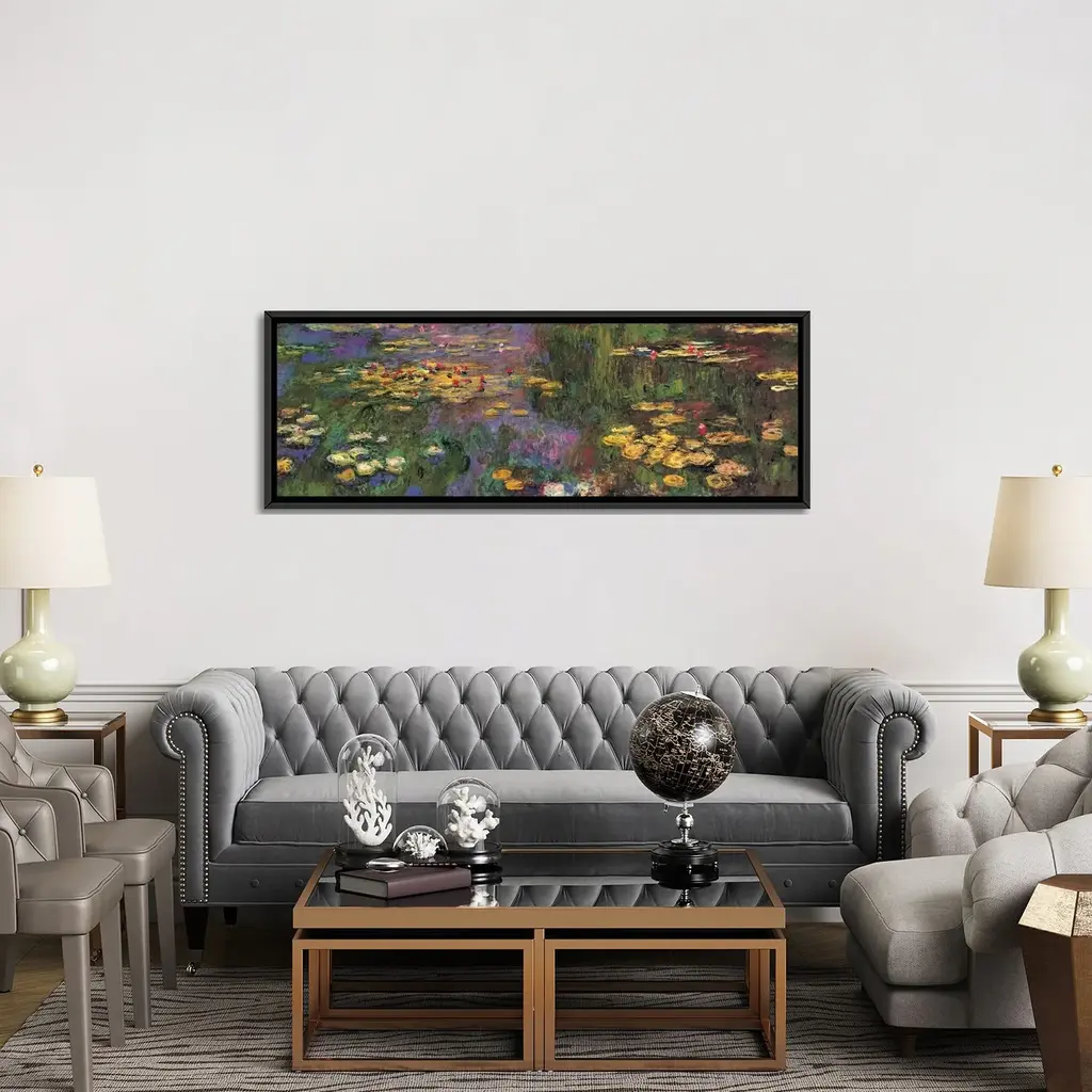 Icanvas "Water Lilies" By Claude Monet Framed Canvas Print - 20x60 - Black