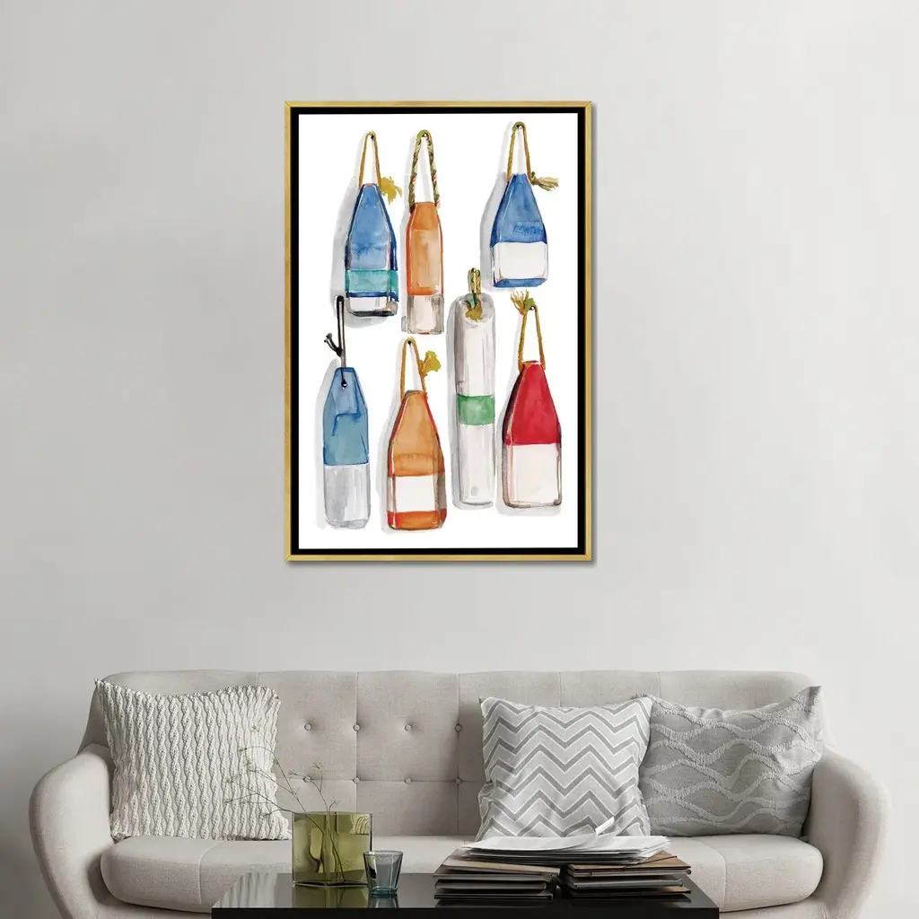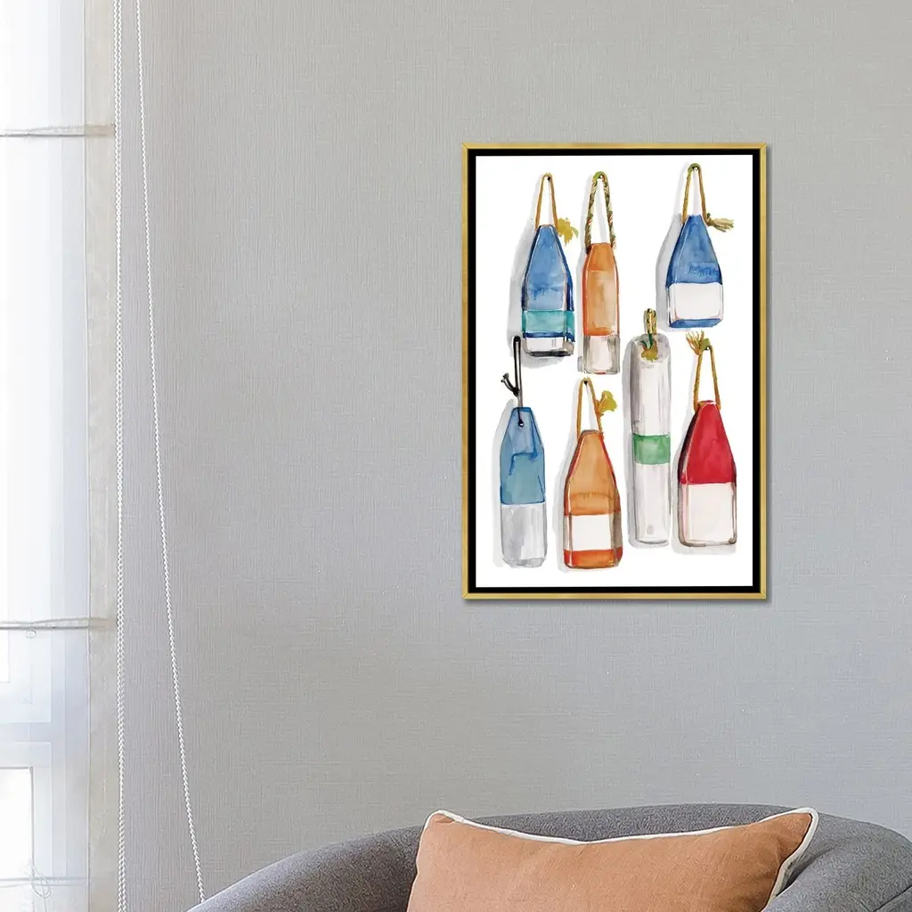 Icanvas "Watercolor Buoys I" By Jennifer Paxton Parker Framed Canvas Print - Black - 40x26