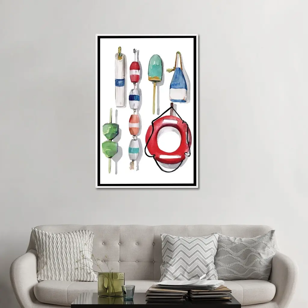Icanvas "Watercolor Buoys Ii" By Jennifer Paxton Parker Framed Canvas Print - White - 48x32