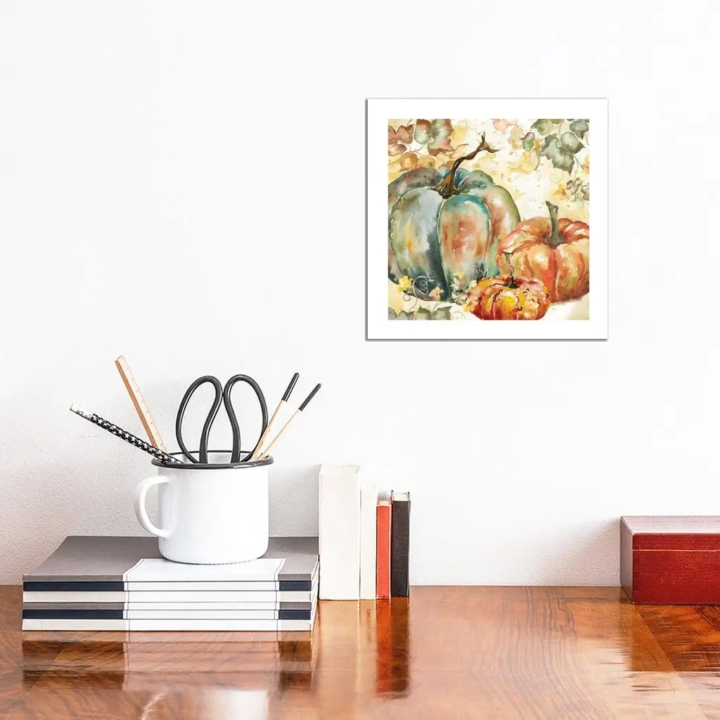 Icanvas "Watercolor Harvest Teal And Orange Pumpkins I" By Tre Sorelle Studios Canvas Print - 37x37x1.5