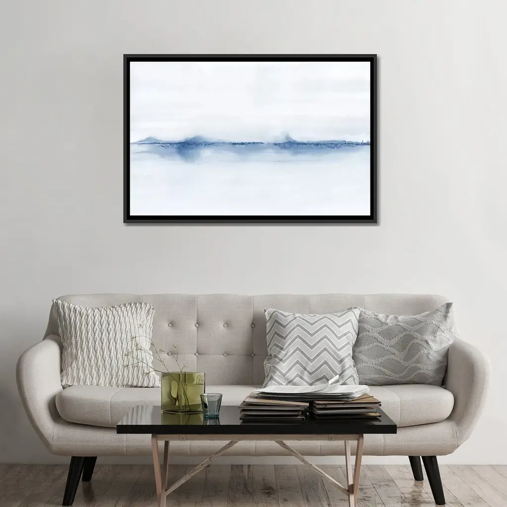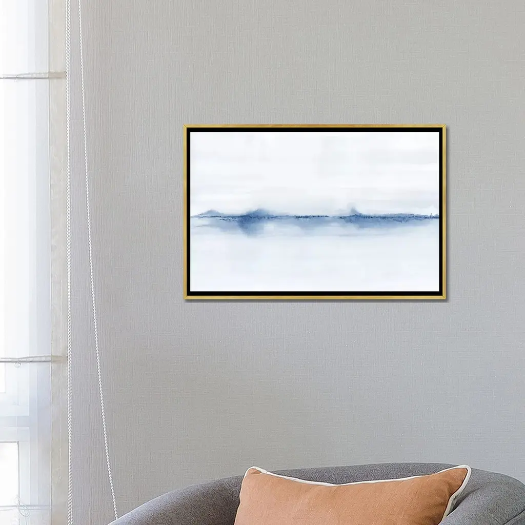 Icanvas "Watercolor Landscape V - Shades Of Blue" By Nouveau Prints Framed Canvas Print - Gold - 26x40