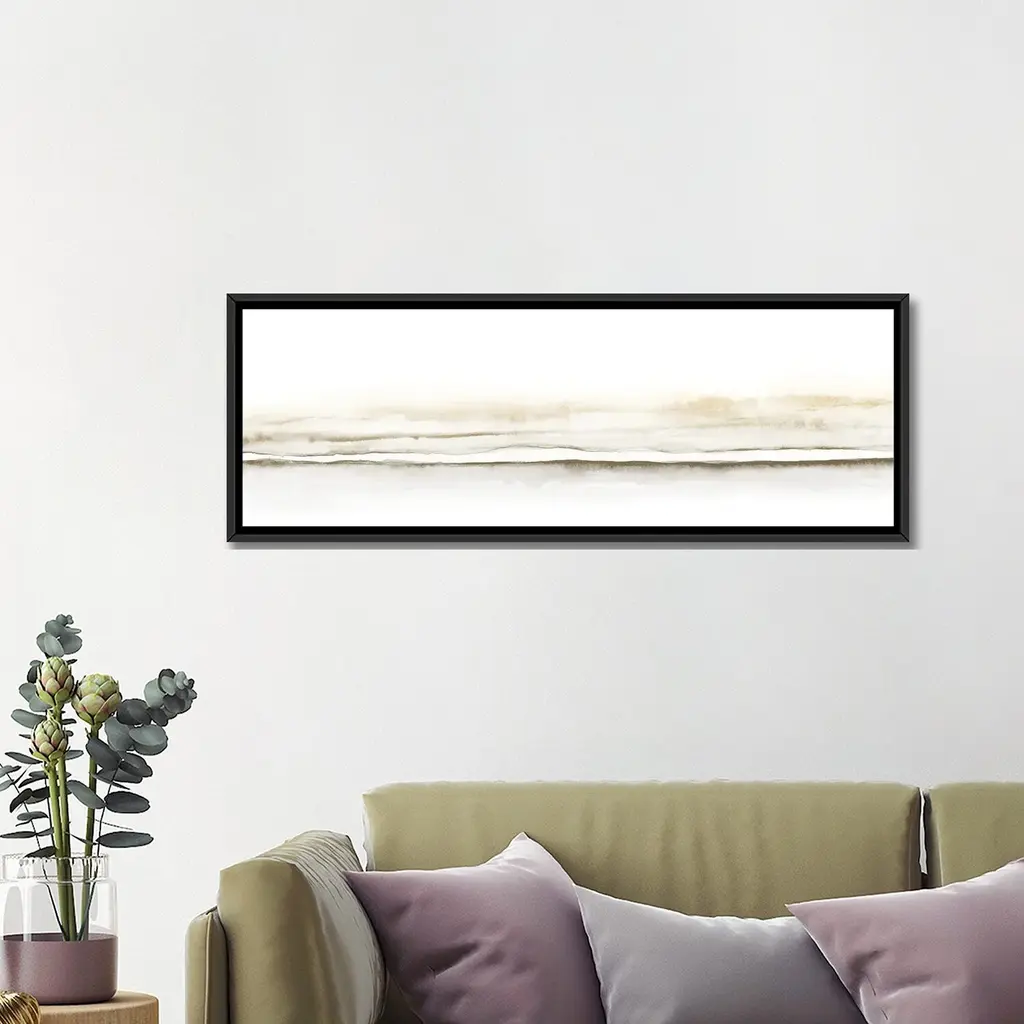 Icanvas "Watercolor Landscape Xiv - Panoramic" By Nouveau Prints Framed Canvas Print - 16x48 - Black